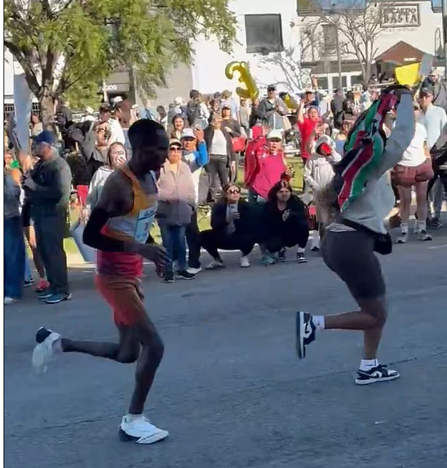 매체에 따르면, 경주 막바지 결승선을 향해 독주하던 케냐의 마이클 키마니 카마우는 연이은 불운에 시달렸다. 먼저 케냐 국기를 흔드는 한 여성 팬이 진로를 가로막아 이를 피해야 했고, 동시에 주황색 셔츠를 입은 자원봉사자가 두 갈래로 나뉜 바리케이드의 오른쪽으로 그를 유도했다. 심지어 선두에서 정확한 코스를 유도해야 할 페이스 차량마저 갈림길 오른쪽으로 이동하면서 카마우는 의심 없이 그 뒤를 따랐다.