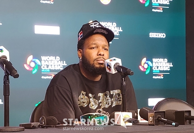 게레로 주니어는 13일(한국시간) 미국 플로리다주 마이애미에 위치한 론디포파크에서 진행된 도미니카 훈련을 모두 마친 뒤 공식 기자회견에 나선 자리에서 특유의 화려한 외모와는 달리 진지한 태도로 14일 열리는 한국전에 임하는 각오를 밝혔다.