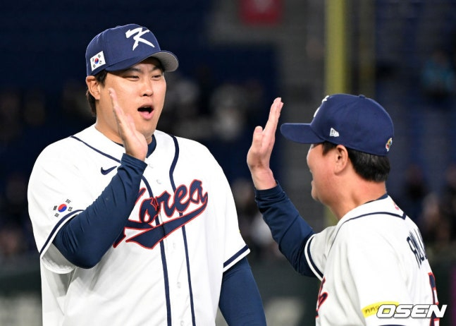 실제로 류현진은 불혹을 앞둔 나이에도 불구하고 대한민국 마운드의 중심을 잡으며 끝까지 경쟁력을 증명해 왔다. 류 감독은 "그 나이까지 대한민국 대표팀의 선발 투수로 나갈 수 있는 경쟁력을 유지했다는 것 자체가 대단한 일"이라며 "마지막 경기에서 2회까지 마쳤다면 자신의 역할을 모두 달성한 뒤 마운드에서 내려왔을 것 같은데, 그런 부분이 아쉽긴 하다. 그래도 대표팀의 최고참 선수로서 마지막 순간까지 최선을 다해준 점을 정말 칭찬하고 싶다"고 덧붙였다.