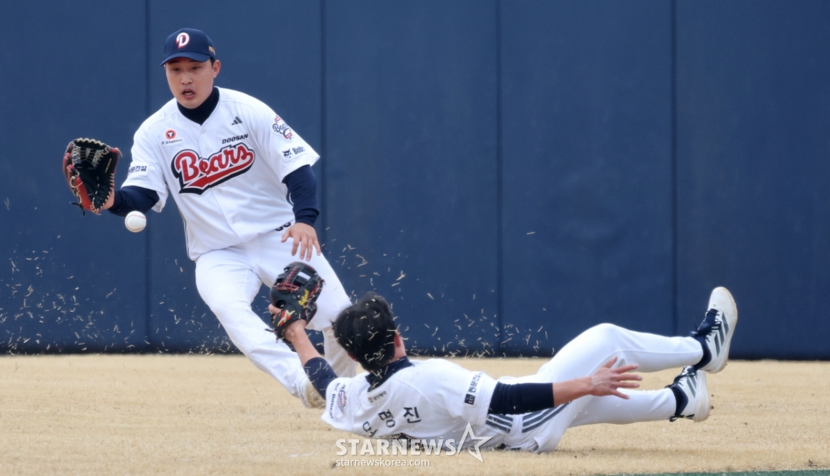 스포츠야구[포토]'간발의 차이로 못잡네' 오명진발행 : 2026.03.15 ・ 13:37이천=강영조 선임기자두산 오명진이 15일 이천 두산베어스파크에서 열린 2026 프로야구 시범경기 두산베어스와 삼성라이온즈 경기 1회초 이성규의 안타를 잡아내지 못하고 있다. 2026.03.15.<저작권자 © 스타뉴스, 무단전재 및 재배포 금지>브리핑2026년 3월 15일 이천 두산베어스파크에서 2026 프로야구 시범경기가 열렸다. 두산베어스와 삼성라이온즈의 경기였다. 두산 오명진은 1회초 이성규의 안타를 간발의 차이로 잡아내지 못했다.추천 기사강영조 선임기자기자홈좋아요스포츠-야구의 인기 급상승 뉴스스포츠-야구의 최신 뉴스