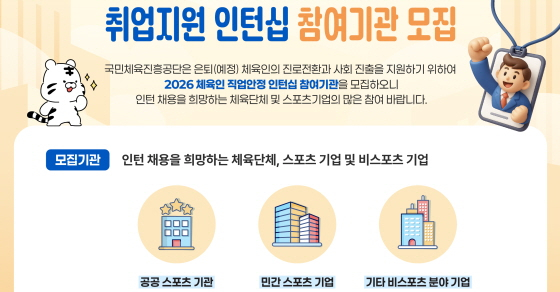 국민체육진흥공단이 은퇴 체육인의 안정적 사회 진출과 원활한 경력 전환 지원을 위해 추진하는 '2026년 체육인 직업안정 사업'에 함께할 기관을 모집한다.