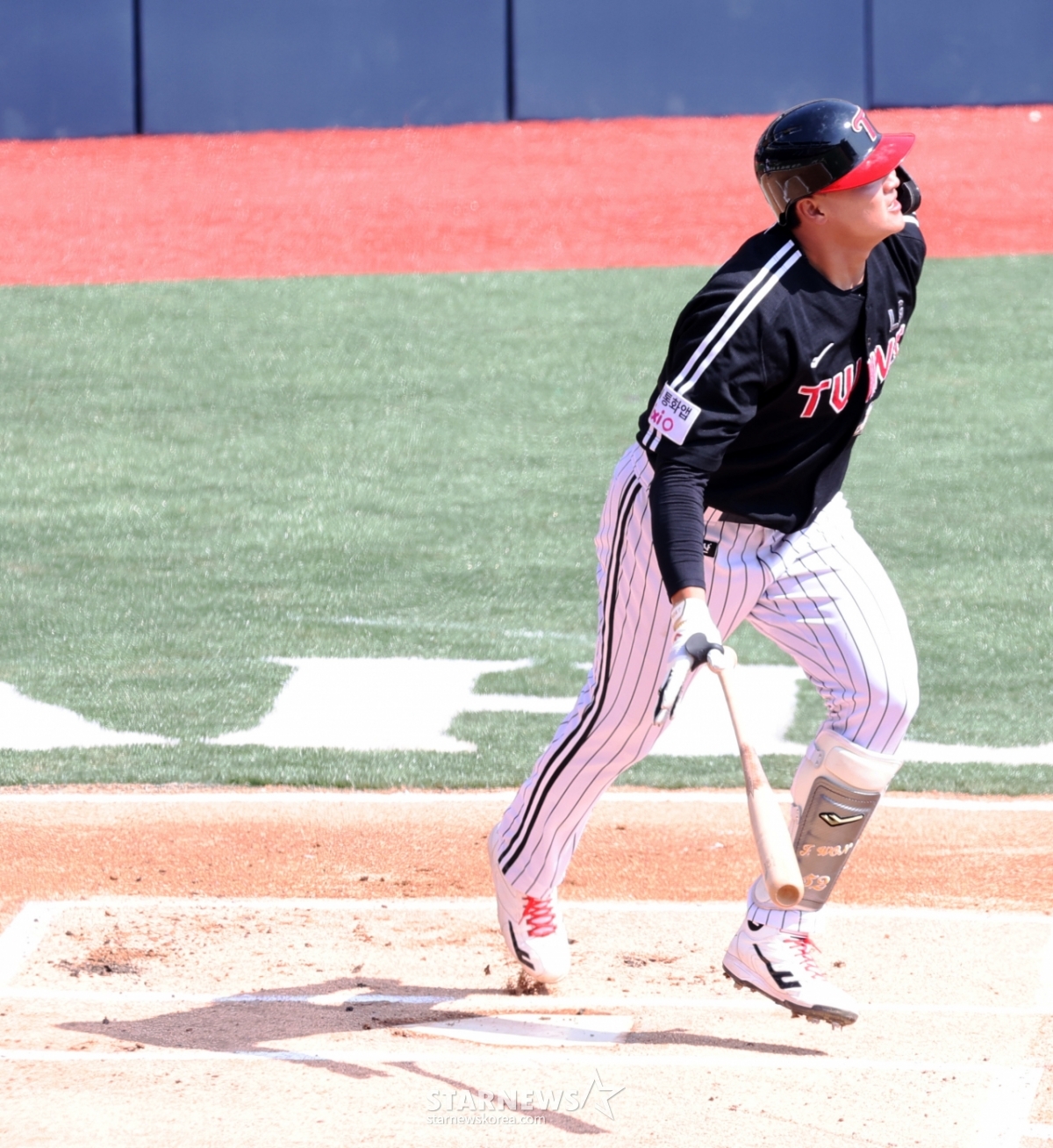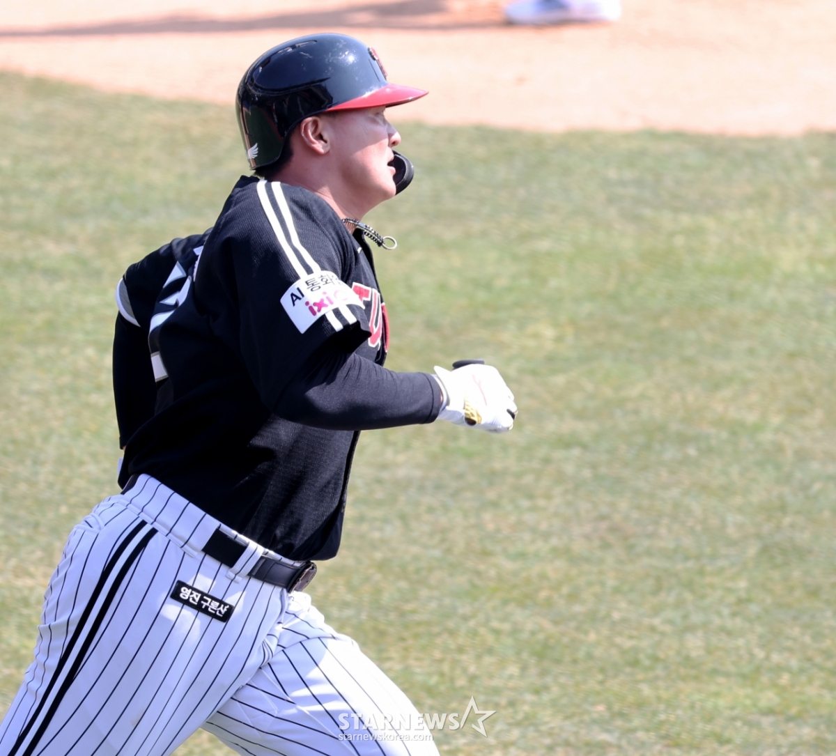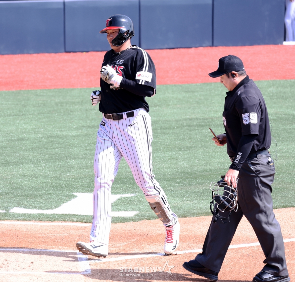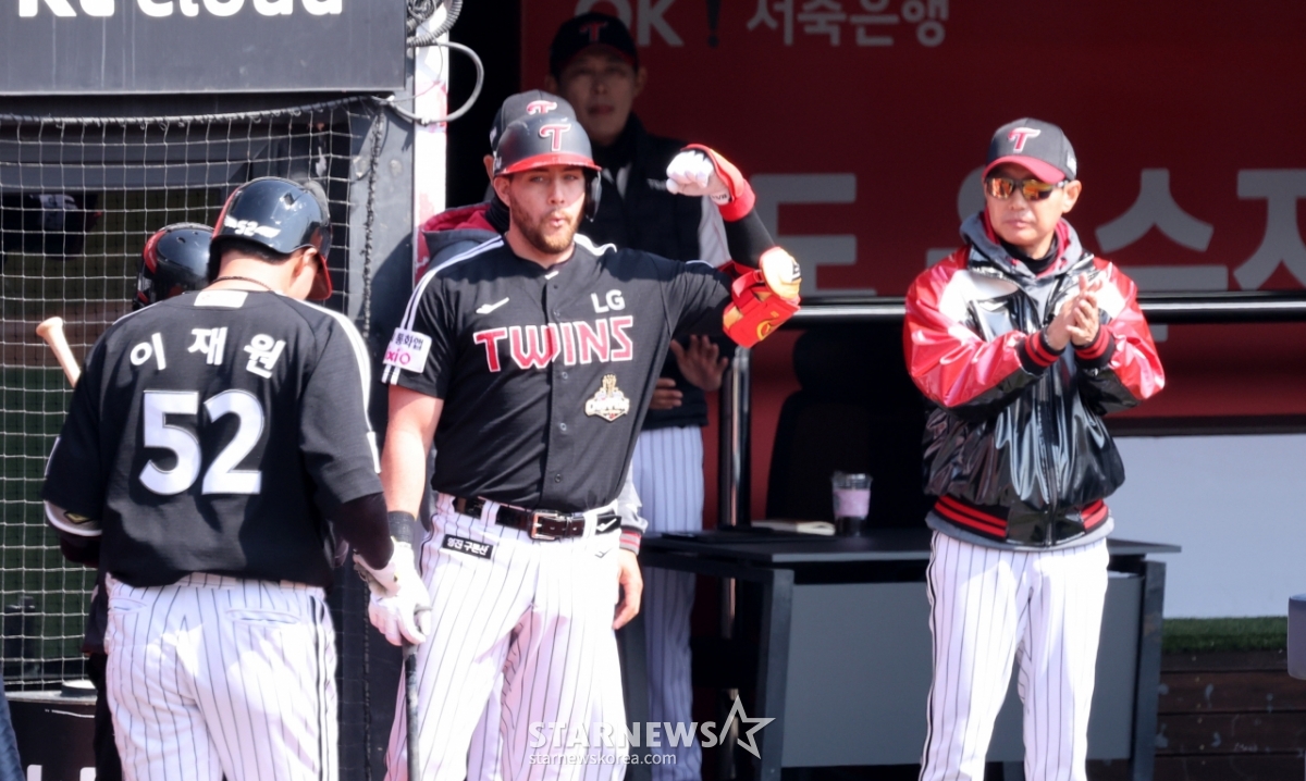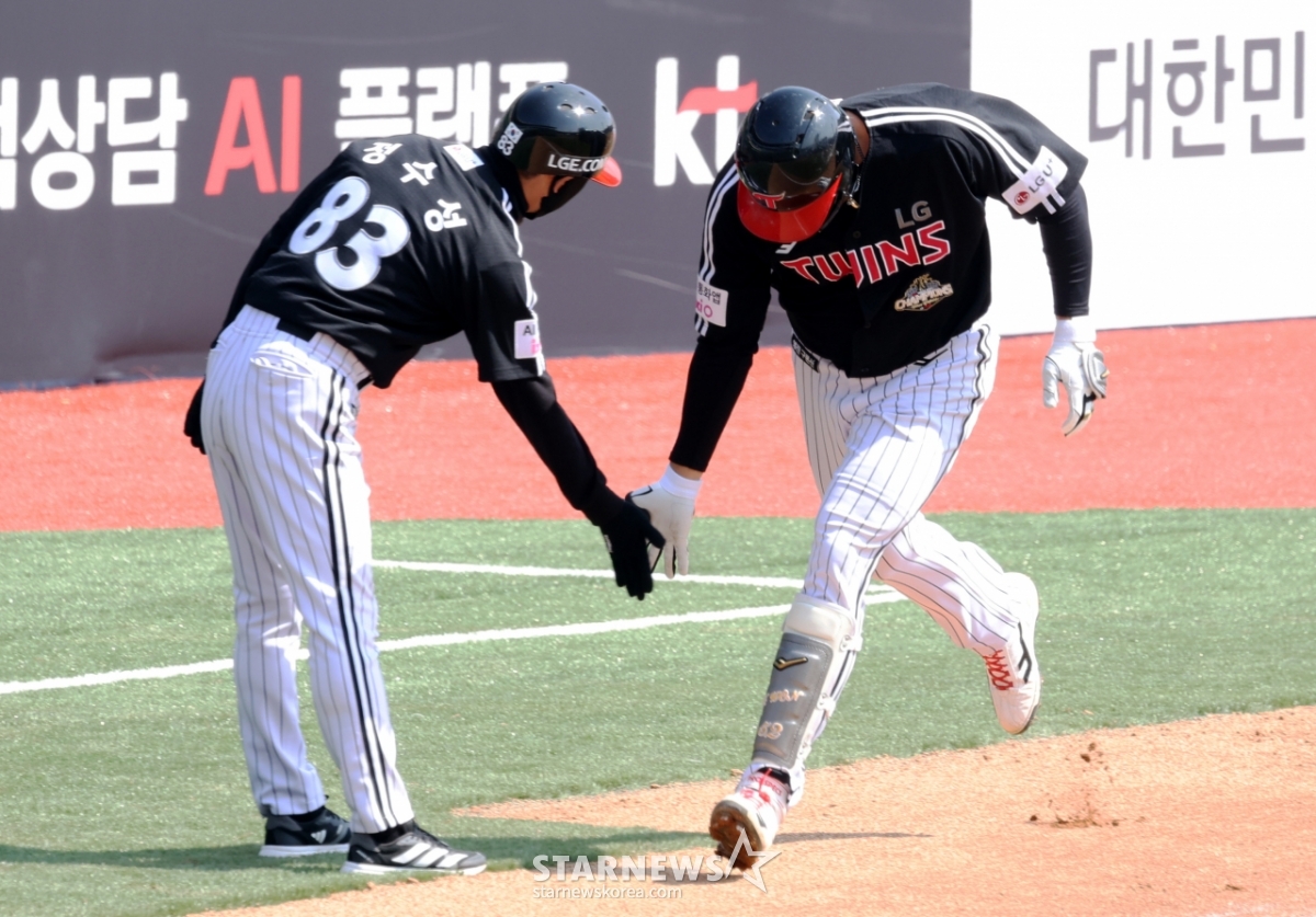 스포츠야구[한번에쓱]드디어 터진겨? '첫 타석 홈런으로 장식하는' 잠실빅보이 이재원발행 : 2026.03.17 ・ 13:20수원=강영조 선임기자LG 1번타자 이재원이 17일 KT위즈파크에서 열린 2026 프로야구 시범경기 KT위즈와 LG트윈스 경기 1회초 선두타자로 나와 오원석을 상대로 선제 솔로홈런을 터트린 후 염경엽 감독의 축하를 받고 있다. 2026.03.17.<저작권자 © 스타뉴스, 무단전재 및 재배포 금지>브리핑LG의 1번 타자 이재원이 17일 KT위즈파크에서 열린 2026 프로야구 시범경기에서 KT위즈를 상대로 첫 타석에서 선제 솔로 홈런을 터트렸다. 이재원은 1회초 선두타자로 나와 오원석을 상대로 홈런을 기록했다. 그는 홈런 후 염경엽 감독의 축하를 받았다.추천 기사강영조 선임기자기자홈좋아요스포츠-야구의 인기 급상승 뉴스스포츠-야구의 최신 뉴스