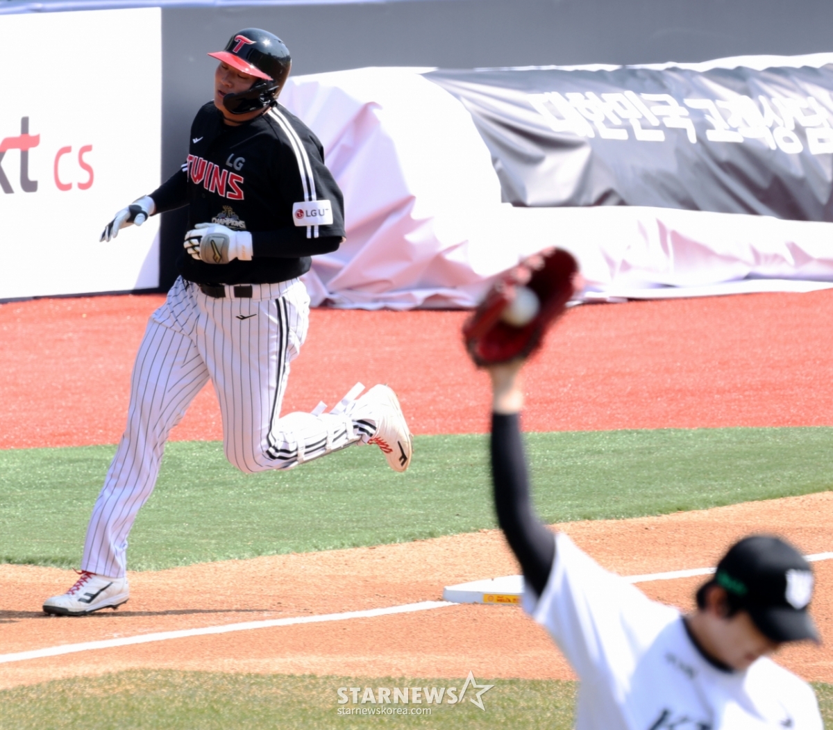 스포츠야구[포토]'첫 타석 홈런으로 장식하는' 잠실빅보이 이재원발행 : 2026.03.17 ・ 13:19수원=강영조 선임기자LG 1번타자 이재원이 17일 KT위즈파크에서 열린 2026 프로야구 시범경기 KT위즈와 LG트윈스 경기 1회초 선두타자로 나와 오원석을 상대로 선제 솔로홈런을 터트린 후 염경엽 감독의 축하를 받고 있다. 2026.03.17.<저작권자 © 스타뉴스, 무단전재 및 재배포 금지>브리핑LG 트윈스의 이재원 선수가 17일 KT위즈파크에서 열린 2026 프로야구 시범경기에서 첫 타석 홈런을 기록했다. 이재원은 KT위즈와의 경기 1회초 선두타자로 나서 오원석을 상대로 선제 솔로홈런을 터트렸다. 그는 홈런 후 염경엽 감독의 축하를 받았다.추천 기사강영조 선임기자기자홈좋아요스포츠-야구의 인기 급상승 뉴스스포츠-야구의 최신 뉴스