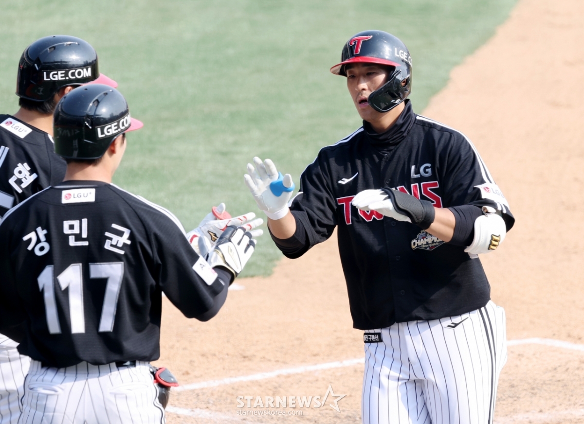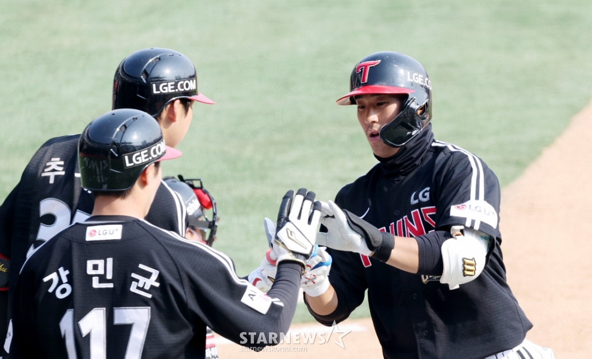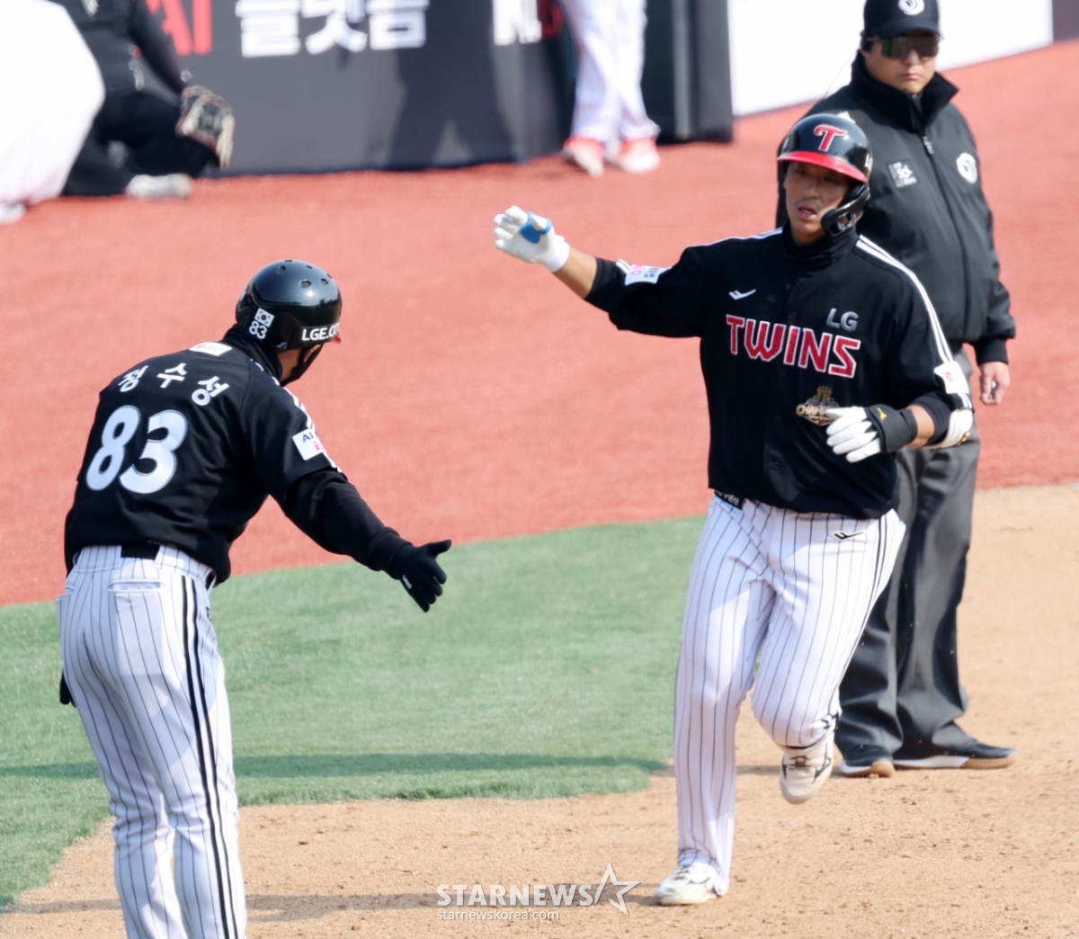 스포츠야구[한번에쓱]9회초 투런홈런 쏘아올린 송찬의발행 : 2026.03.17 ・ 15:31수원=강영조 선임기자LG 송찬의가 17일 KT위즈파크에서 열린 2026 프로야구 시범경기 KT위즈와 LG트윈스 경기 9회초 손동현을 상대로 투런홈런을 터트린 후 홈인 하고 있다. 2026.03.17.<저작권자 © 스타뉴스, 무단전재 및 재배포 금지>브리핑LG 송찬의가 17일 KT위즈파크에서 열린 2026 프로야구 시범경기 KT위즈와 LG트윈스 경기 9회초에 손동현을 상대로 투런홈런을 터트렸다. 송찬의는 홈런을 친 후 홈인했다. 이 경기는 2026년 3월 17일에 진행되었다.추천 기사강영조 선임기자기자홈좋아요스포츠-야구의 인기 급상승 뉴스스포츠-야구의 최신 뉴스
