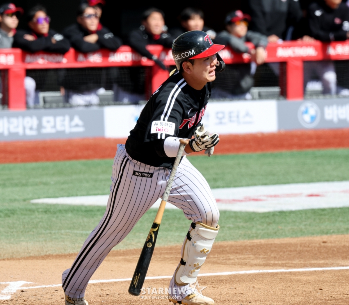 스포츠야구[포토]'외야플라이로 물러나는' 이주현발행 : 2026.03.19 ・ 13:59인천=강영조 선임기자LG 9번타자 이주현이 19일 인천SSG랜더스필드에서 열리는 2026프로야구 ㄴSSG랜더스와 LG트윈스 경기 4회초 외야플라이로 물러나고 있다. 2026.03.19.LG 9번타자 이주현이 19일 인천SSG랜더스필드에서 열리는 2026프로야구 ㄴSSG랜더스와 LG트윈스 경기 4회초 외야플라이로 물러나고 있다. 2026.03.19.<저작권자 © 스타뉴스, 무단전재 및 재배포 금지>브리핑LG 9번타자 이주현이 19일 인천SSG랜더스필드에서 열린 2026프로야구 SSG랜더스와 LG트윈스 경기 4회초에 외야플라이로 물러났다. 이 장면은 사진으로 포착되었다. 경기는 2026년 3월 19일에 진행되었다.추천 기사강영조 선임기자기자홈좋아요스포츠-야구의 인기 급상승 뉴스스포츠-야구의 최신 뉴스AD
