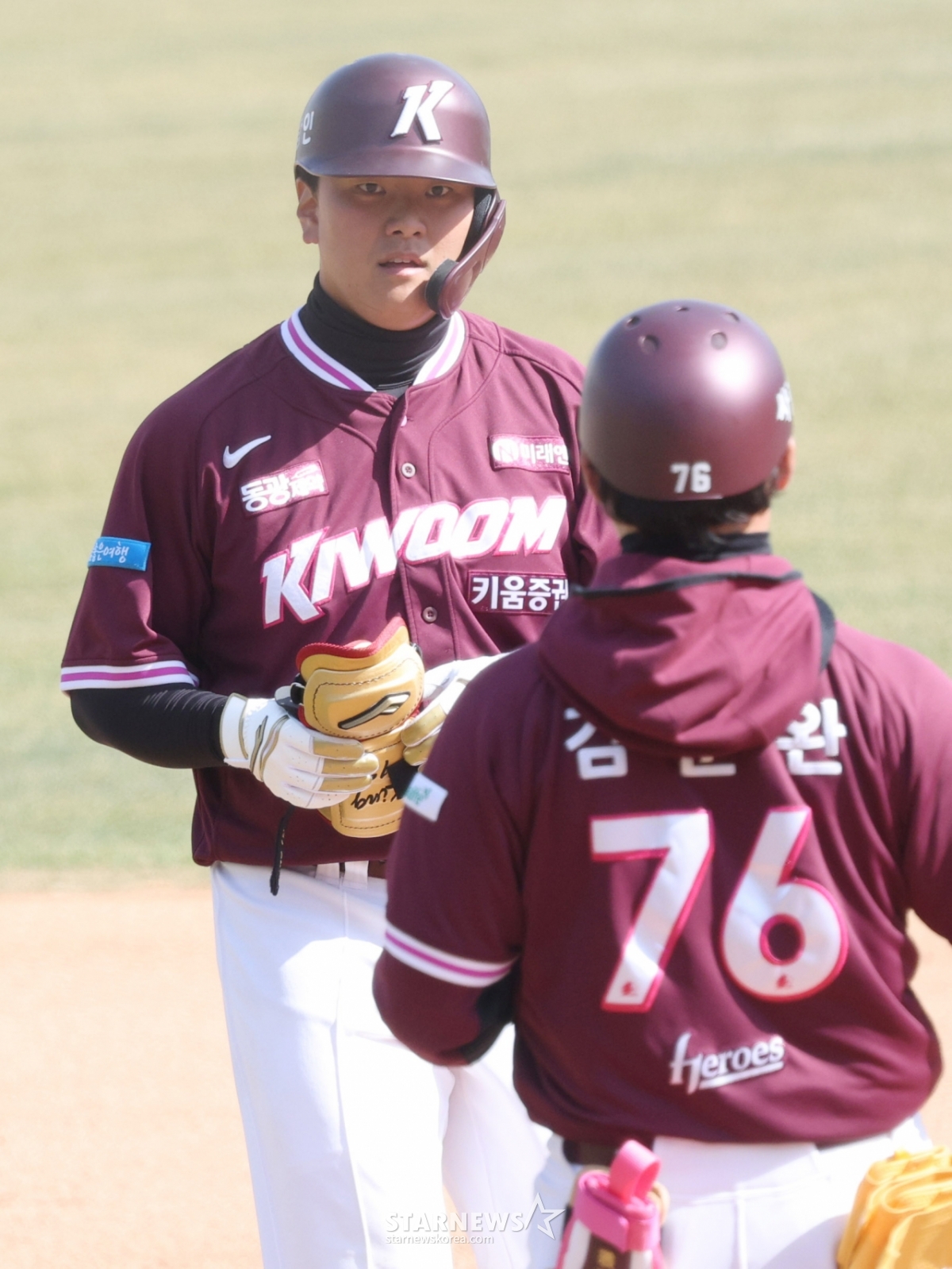 스포츠야구[포토] 김건희 '가뿐하게 역전 2루타'발행 : 2026.03.19 ・ 15:00수원=김진경 대기자2026 신한 SOL Bank KBO리그 시범경기 KT 위즈 대 키움 히어로즈 경기가 19일 수원 KT위즈파크에서 열렸다.키움 김건희가 7회초 2사 1,2루에서 역전 2타점 적시타를 날리고 출루한 후 1루 코치의 환영을 받고 있다.<저작권자 © 스타뉴스, 무단전재 및 재배포 금지>브리핑2026 신한 SOL Bank KBO리그 시범경기 KT 위즈 대 키움 히어로즈 경기가 19일 수원 KT위즈파크에서 열렸다. 키움 김건희는 7회초 2사 1,2루 상황에서 역전 2타점 적시타를 날렸다. 김건희는 출루 후 1루 코치의 환영을 받았다.추천 기사김진경 대기자기자홈좋아요스포츠-야구의 인기 급상승 뉴스스포츠-야구의 최신 뉴스AD