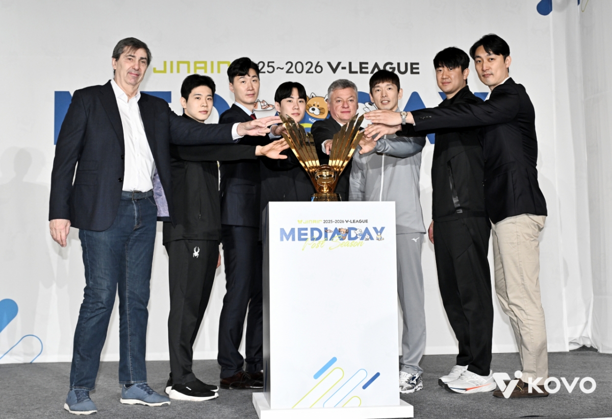 최태웅 해설위원은 20일 서울 강남구 호텔 리베라 청담에서 열린 진에어 2025~2026 V-리그 포스트시즌 미디어데이에서 포스트시즌 진출팀들의 정규리그 리뷰와 포스트시즌 진출팀 간 상대를 직접 비교했다.