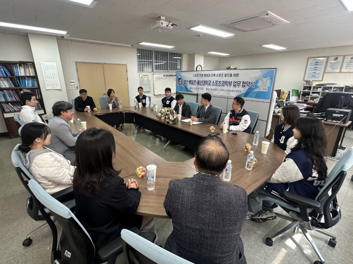 울산 웨일즈 야구단과 울산대학교 스포츠과학부가 27일 정오에 업무협약(MOU)을 체결하고, 현장 중심의 실무형 스포츠 인재 양성을 위한 협력에 본격적으로 나섰다.
