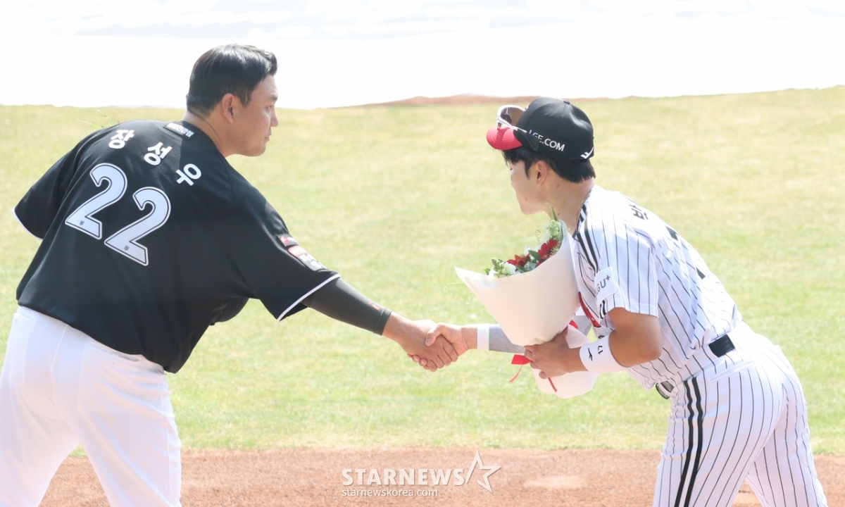 스포츠야구[포토] 장성우-박해민 '굿게임'발행 : 2026.03.28 ・ 13:52잠실=김진경 대기자2026 신한 SOL Bank KBO리그 공식 개막전 LG 트윈스 대 KT 위즈 경기가 28일 서울 잠실야구장에서 열렸다.kt 주장 장성우와 LG 주장 박해민이 개막식 후 악수를 하며 선전을 다짐하고 있다.<저작권자 © 스타뉴스, 무단전재 및 재배포 금지>브리핑2026 신한 SOL Bank KBO리그 공식 개막전 LG 트윈스 대 KT 위즈 경기가 28일 서울 잠실야구장에서 열렸다. kt 주장 장성우와 LG 주장 박해민이 개막식 후 악수를 했다. 두 선수는 선전을 다짐했다.추천 기사김진경 대기자기자홈좋아요스포츠-야구의 인기 급상승 뉴스스포츠-야구의 최신 뉴스AD