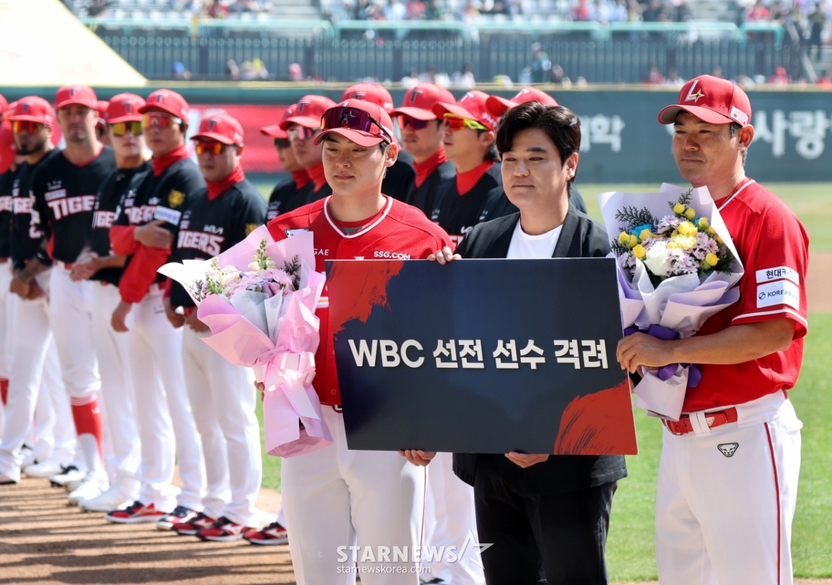 스포츠야구[포토]'랜더스 추신수 특보로부터 꽃다발' 노경은과 조병현발행 : 2026.03.28 ・ 14:12인천=강영조 선임기자WBC에서 활약했던 노경은과 조병현이 28일 인천SSG랜더스필드에서 열리는 2026 프로야구 SSG랜더스와 KIA타이거즈 개막경기에서 추신수 특보로부터 꽃다발을 받고 있다. 2026.03.28.<저작권자 © 스타뉴스, 무단전재 및 재배포 금지>브리핑WBC에서 활약했던 노경은과 조병현이 28일 인천SSG랜더스필드에서 열리는 2026 프로야구 SSG랜더스와 KIA타이거즈 개막경기에서 추신수 특보로부터 꽃다발을 받았다. 이들은 추신수 특보에게 꽃다발을 받으며 격려를 받았다. 이 행사는 2026년 3월 28일에 진행되었다.추천 기사강영조 선임기자기자홈좋아요스포츠-야구의 인기 급상승 뉴스스포츠-야구의 최신 뉴스AD