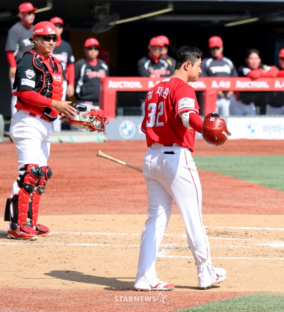 스포츠야구[포토]'첫타석 플라이로 물러난' 김재환발행 : 2026.03.28 ・ 15:16인천=강영조 선임기자랜더스 4번타자 김재환이 28일 인천SSG랜더스필드에서 열리는 2026 프로야구 SSG랜더스와 KIA타이거즈 개막경기 1회말 외야플라이로 물러나고 있다. 2026.03.28.<저작권자 © 스타뉴스, 무단전재 및 재배포 금지>브리핑2026년 3월 28일 인천SSG랜더스필드에서 열린 SSG랜더스와 KIA타이거즈의 개막경기에서 랜더스 4번타자 김재환이 첫 타석에 들어섰다. 그는 1회말 외야플라이로 물러났다. 김재환은 첫 타석에서 아쉬움을 남겼다.추천 기사강영조 선임기자기자홈좋아요스포츠-야구의 인기 급상승 뉴스스포츠-야구의 최신 뉴스AD