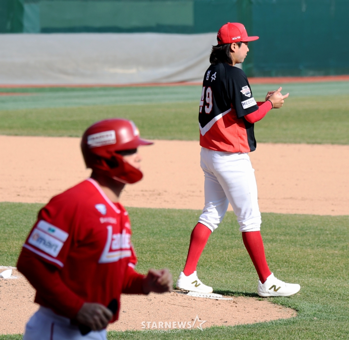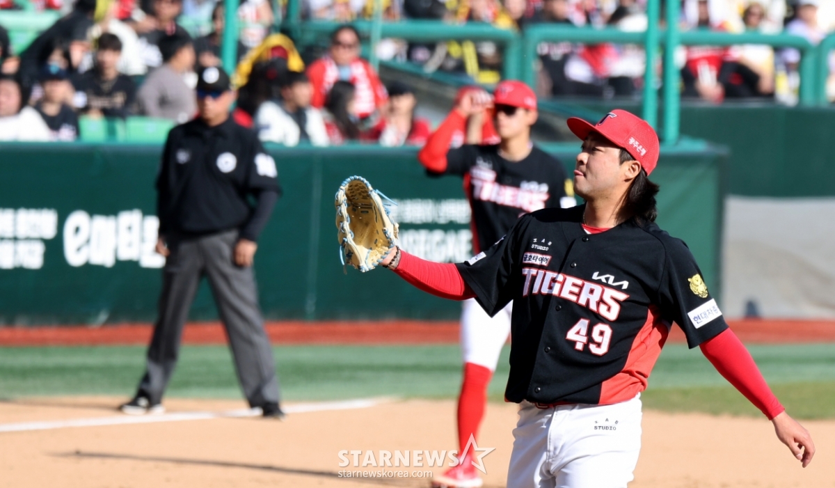 스포츠야구[한번에쓱]5-0리드 7회말 등판한 김범수'무사 만루에서 강판'발행 : 2026.03.28 ・ 16:28인천=강영조 선임기자기아 왼손 불펜 김범수가 28일 인천SSG랜더스필드에서 열리는 2026 프로야구 SSG랜더스와 KIA타이거즈 개막경기 7회말 네일에 이어 등판했으나 무사 만루위기에서 강판되고 있다. 2026.03.28.<저작권자 © 스타뉴스, 무단전재 및 재배포 금지>브리핑기아 왼손 불펜 김범수가 28일 인천SSG랜더스필드에서 열린 2026 프로야구 SSG랜더스와 KIA타이거즈 개막경기 7회말에 등판했다. 그는 네일에 이어 마운드에 올랐다. 그러나 김범수는 무사 만루 위기에서 강판됐다.추천 기사강영조 선임기자기자홈좋아요스포츠-야구의 인기 급상승 뉴스스포츠-야구의 최신 뉴스AD