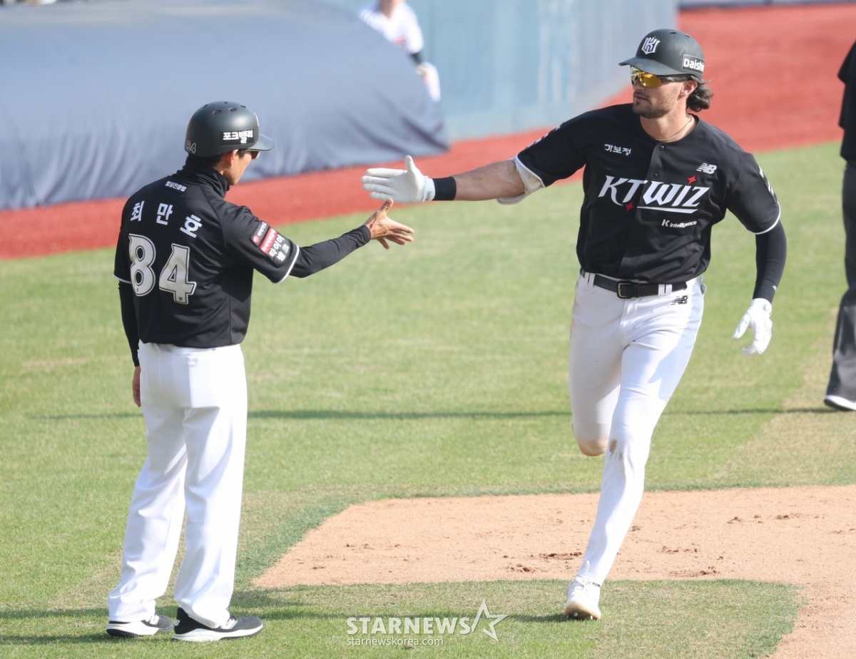 스포츠야구[포토] 힐리어드 '이쯤 되면 쐐기포'발행 : 2026.03.28 ・ 16:44잠실=김진경 대기자2026 신한 SOL Bank KBO리그 공식 개막전 LG 트윈스 대 KT 위즈 경기가 28일 서울 잠실야구장에서 열렸다.KT 힐리어드가 7회초 2사 2루에서 우월 2점 홈런을 닐리고 홈인하고 있다.<저작권자 © 스타뉴스, 무단전재 및 재배포 금지>브리핑2026 신한 SOL Bank KBO리그 공식 개막전 LG 트윈스와 KT 위즈의 경기가 28일 서울 잠실야구장에서 열렸다. KT 힐리어드는 7회초 2사 2루 상황에서 우월 2점 홈런을 쳤다. 힐리어드는 홈인하며 팀에 쐐기포를 안겼다.추천 기사김진경 대기자기자홈좋아요스포츠-야구의 인기 급상승 뉴스스포츠-야구의 최신 뉴스AD