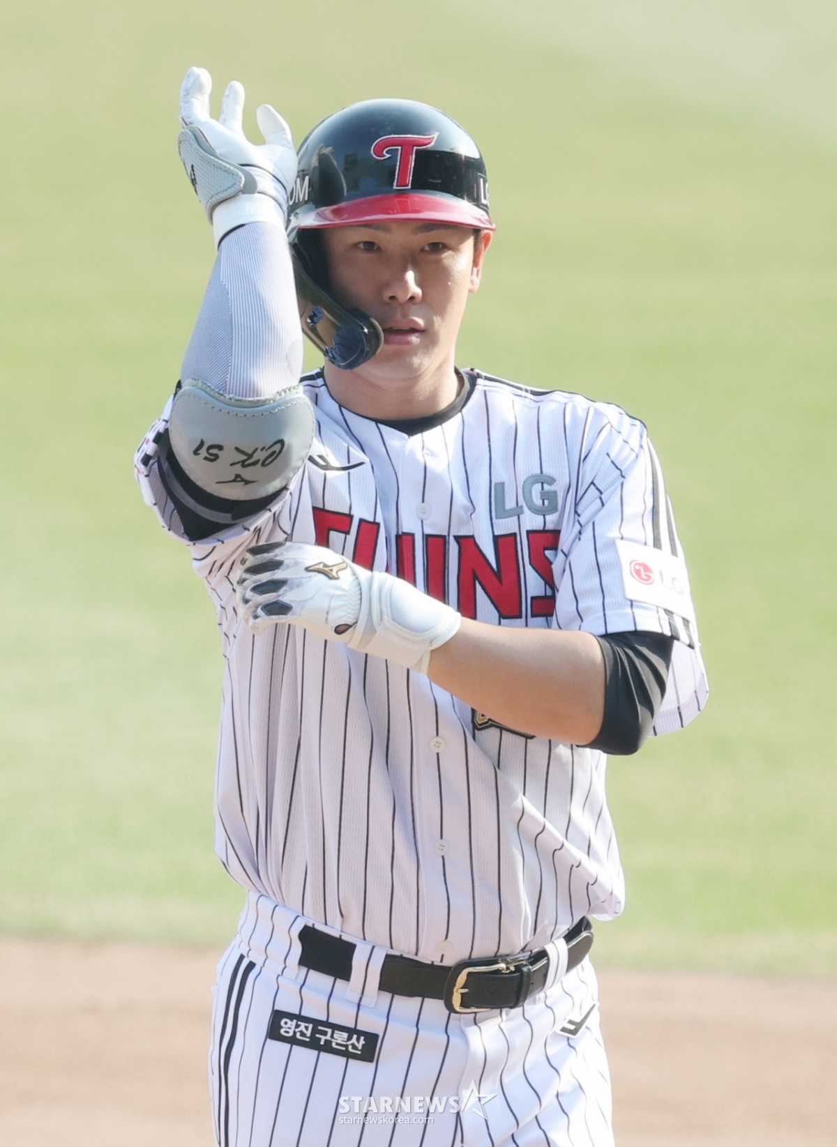 스포츠야구[포토] 홍창기 '만루 찬스 만들었다'발행 : 2026.03.28 ・ 18:28잠실=김진경 대기자2026 신한 SOL Bank KBO리그 공식 개막전 LG 트윈스 대 KT 위즈 경기가 28일 서울 잠실야구장에서 열렸다.LG 홍창기가 8회말 무사 1, 2루에서 우전 안타로 출루한 후 세리머니를 하고 있다.<저작권자 © 스타뉴스, 무단전재 및 재배포 금지>브리핑2026 신한 SOL Bank KBO리그 공식 개막전 LG 트윈스와 KT 위즈의 경기가 28일 서울 잠실야구장에서 열렸다. LG 홍창기는 8회말 무사 1, 2루 상황에서 우전 안타를 쳤다. 이 안타로 홍창기는 출루하며 만루 찬스를 만들었다.추천 기사김진경 대기자기자홈좋아요스포츠-야구의 인기 급상승 뉴스스포츠-야구의 최신 뉴스AD