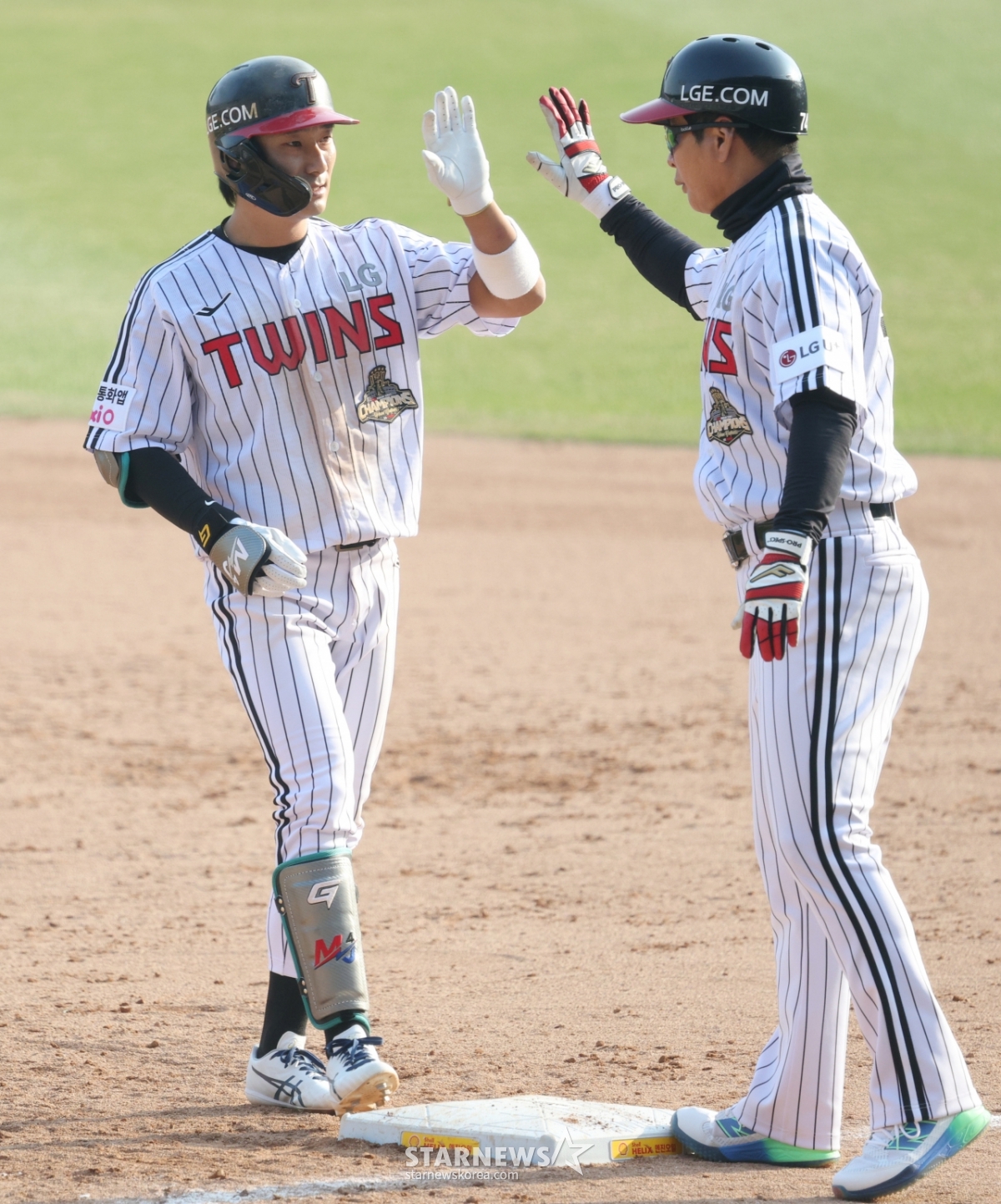 스포츠야구[포토] 신민재, 끝까지 추격발행 : 2026.03.28 ・ 18:34잠실=김진경 대기자2026 신한 SOL Bank KBO리그 공식 개막전 LG 트윈스 대 KT 위즈 경기가 28일 서울 잠실야구장에서 열렸다.LG 신민재가 8회말 무사 만루에서 1타점 적시타를 날리고 출루한 후 송지만 코치의 환영을 받고 있다.<저작권자 © 스타뉴스, 무단전재 및 재배포 금지>브리핑28일 서울 잠실야구장에서 2026 신한 SOL Bank KBO리그 공식 개막전 LG 트윈스 대 KT 위즈 경기가 열렸다. LG 신민재는 8회말 무사 만루에서 1타점 적시타를 날렸다. 신민재는 출루 후 송지만 코치의 환영을 받았다.추천 기사김진경 대기자기자홈좋아요스포츠-야구의 인기 급상승 뉴스스포츠-야구의 최신 뉴스AD