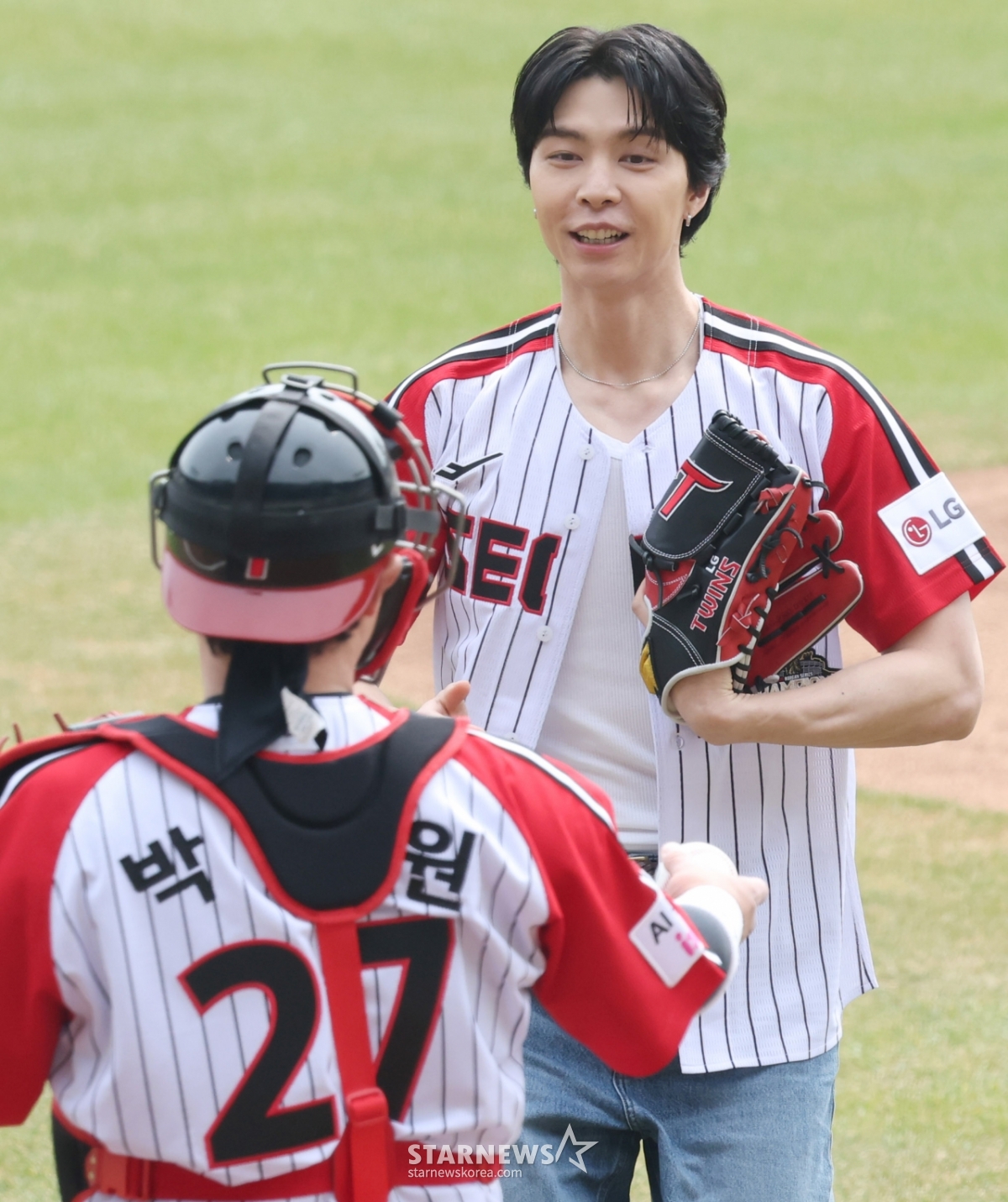 스포츠야구[포토] 쟈니-박동원, 둘 다 '이게 실화냐'발행 : 2026.03.29 ・ 14:06잠실=김진경 대기자2026 신한 SOL Bank KBO리그 LG 트윈스 대 KT 위즈 경기가 29일 서울 잠실야구장에서 열렸다.NCT 멤버 쟈니(JOHNNY)가 LG 승리기원 시구를 한 후 포수 박동원에게 공을 건네받고 있다.DJ, 예능, MC 등 멀티 엔터테이너로 존재감을 뽐내고 있는 쟈니는 최근 2026 WBC 대한민국 경기 시구자로 나서기도 했다.<저작권자 © 스타뉴스, 무단전재 및 재배포 금지>브리핑2026 신한 SOL Bank KBO리그 LG 트윈스와 KT 위즈 경기가 29일 서울 잠실야구장에서 열렸다. NCT 멤버 쟈니가 LG 승리기원 시구를 한 후 포수 박동원에게 공을 건네받았다. 쟈니는 최근 2026 WBC 대한민국 경기 시구자로 나서기도 했다.추천 기사김진경 대기자기자홈좋아요스포츠-야구의 인기 급상승 뉴스스포츠-야구의 최신 뉴스AD