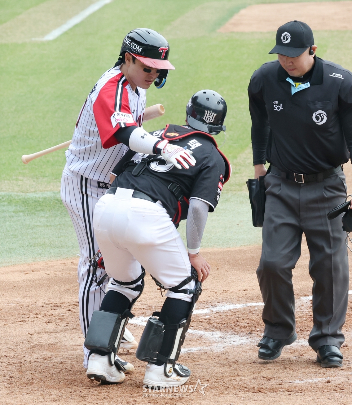 스포츠야구[포토] 박동원 '포수 고역은 포수가 잘 알지'발행 : 2026.03.29 ・ 15:27잠실=김진경 대기자2026 신한 SOL Bank KBO리그 LG 트윈스 대 KT 위즈 경기가 29일 서울 잠실야구장에서 열렸다.LG 박동원이 1회말 KT 포수 한승택이 자신의 파울 타구에 맞아 고통스러워하자 위로하고 있다.<저작권자 © 스타뉴스, 무단전재 및 재배포 금지>브리핑29일 서울 잠실야구장에서 2026 신한 SOL Bank KBO리그 LG 트윈스와 KT 위즈의 경기가 열렸다. LG 박동원은 1회말 자신의 파울 타구에 맞은 KT 포수 한승택을 위로했다. 박동원은 포수로서 한승택의 고통을 이해하며 위로의 말을 건넸다.추천 기사김진경 대기자기자홈좋아요스포츠-야구의 인기 급상승 뉴스스포츠-야구의 최신 뉴스AD