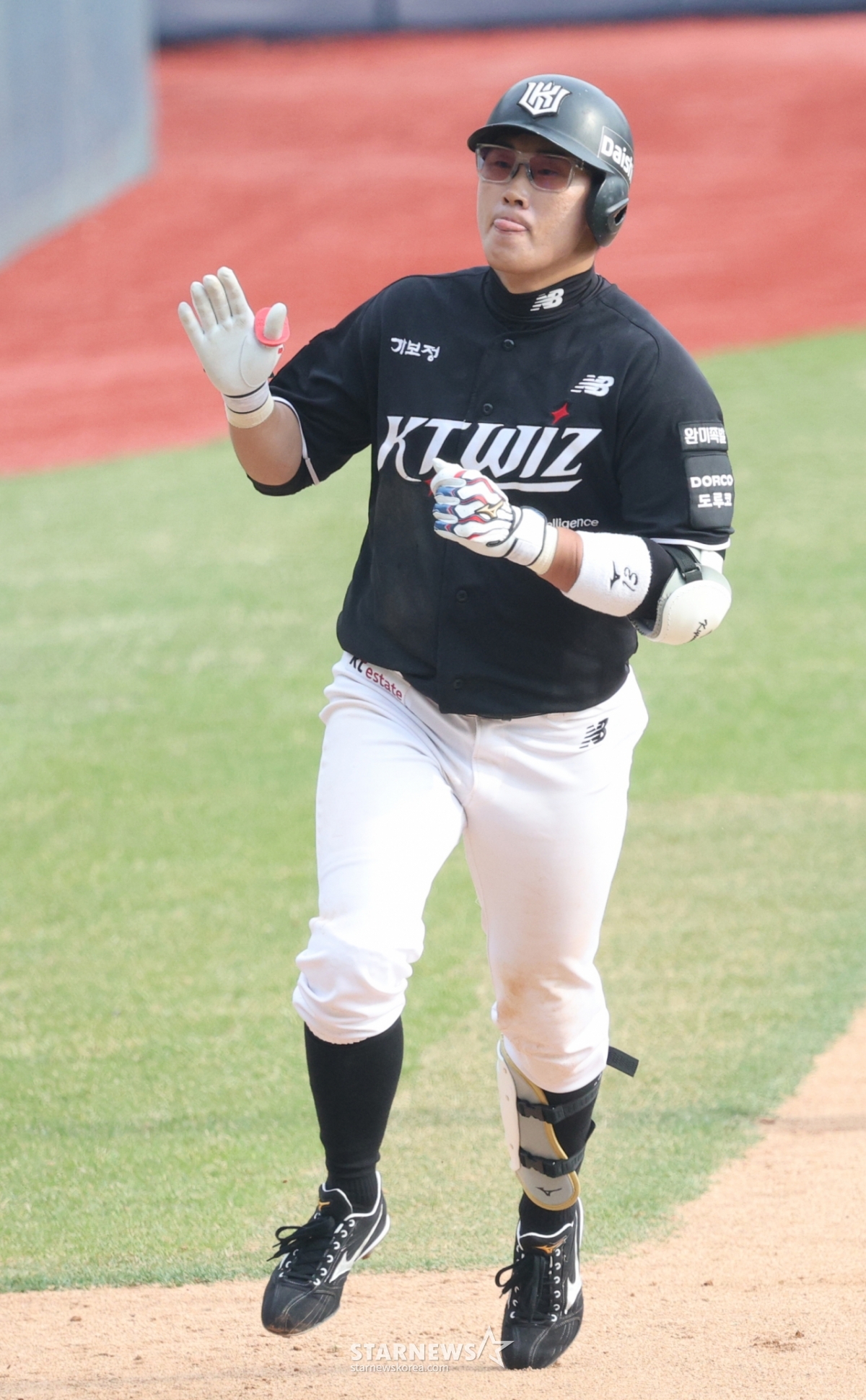 스포츠야구[포토] 허경민, 혀 빼꼼 흑의환향발행 : 2026.03.29 ・ 16:21잠실=김진경 대기자2026 신한 SOL Bank KBO리그 LG 트윈스 대 KT 위즈 경기가 29일 서울 잠실야구장에서 열렸다.KT 허경민이 6회초 2사 1루에서 LG 김진성을 상대로 동점 좌월 2점 홈런을 날리고 홈인하고 있다.<저작권자 © 스타뉴스, 무단전재 및 재배포 금지>브리핑2026 신한 SOL Bank KBO리그 LG 트윈스와 KT 위즈의 경기가 29일 서울 잠실야구장에서 열렸다. KT 허경민은 6회초 2사 1루 상황에서 LG 김진성을 상대로 동점 좌월 2점 홈런을 쳤다. 허경민은 홈인하고 있었다.추천 기사김진경 대기자기자홈좋아요스포츠-야구의 인기 급상승 뉴스스포츠-야구의 최신 뉴스AD