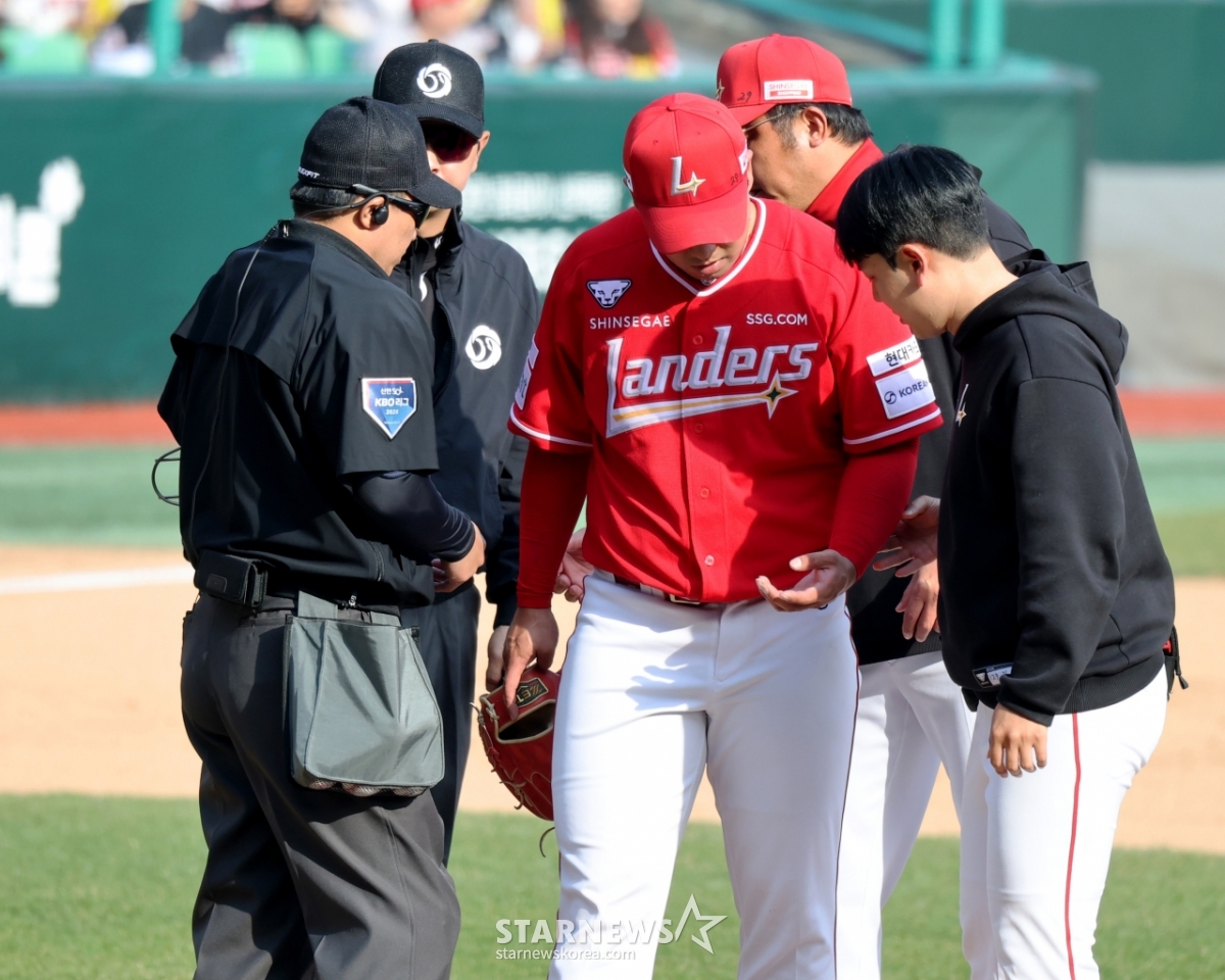 스포츠야구[포토]'엄지손가락에 마비증세가' 자진강판하는 김택형발행 : 2026.03.29 ・ 16:45인천=강영조 선임기자랜더스 좌완불펜 김택형이 29일 인천SSG랜더스필드에서 열리는 2026 프로야구 SSG랜더스와 KIA타이거즈 경기 7회초 엄지손가락 마비증세로 자진강판하고 있다.. 2026.03.29.<저작권자 © 스타뉴스, 무단전재 및 재배포 금지>브리핑29일 인천SSG랜더스필드에서 열린 2026 프로야구 SSG랜더스와 KIA타이거즈 경기에서 랜더스 좌완불펜 김택형이 7회초 마운드에 올랐다. 그는 경기 도중 엄지손가락에 마비 증세를 느꼈다. 결국 김택형은 자진해서 마운드를 내려왔다.추천 기사강영조 선임기자기자홈좋아요스포츠-야구의 인기 급상승 뉴스스포츠-야구의 최신 뉴스AD