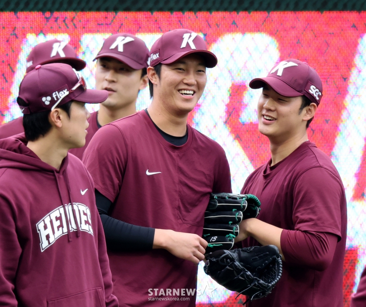키움 에이스 안우진이 31일 인천SSG랜더스필드에서 열리는 2026 프로야구 SSG랜더스와 키움히어로즈의 경기에 앞서 캐치볼로 몸을 풀고 있다. 부상에서 회복중인 안우진이 1군과 동행하고 있다. 2026.03.31.