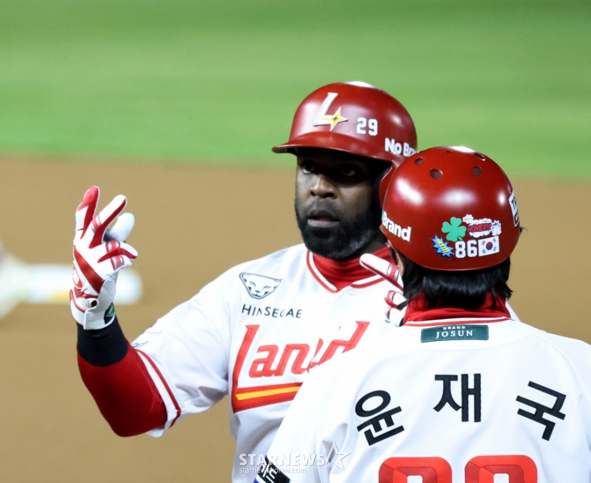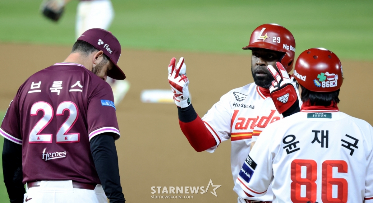 랜더스 2번타자 에레디아가 31일 인천SSG랜더스필드에서 열리는 2026 프로야구 SSG랜더스와 키움히어로즈의 경기 6회말 안타로 출루하고 있다. 2026.03.31.