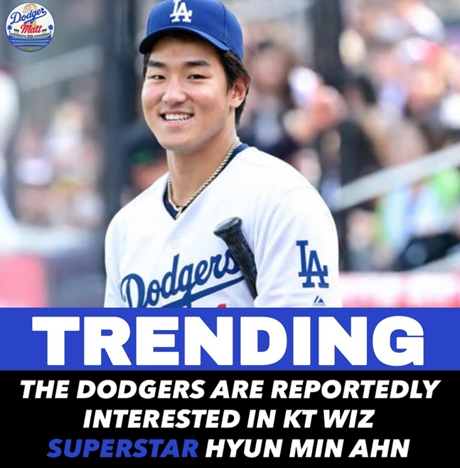 미국 현지에서 다저스 소식만 주로 다루는 매체인 '다저맷(DodgerMatt)'은 최근 SNS에 "다저스의 국제 스카우팅 부서가 안현민에 대한 심층 보고서를 작성했다. 안현민이 보여준 2025시즌 뛰어난 활약과 2026 WBC(월드 베이스볼 클래식) 퍼포먼스에 움직였다"고 전했다.