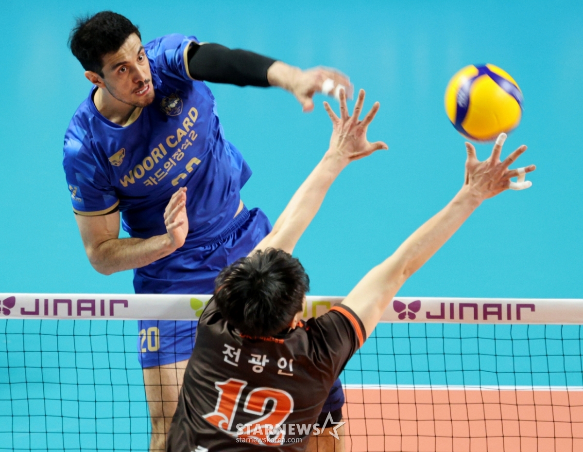 특히 5라운드와 6라운드엔 팀의 상승세를 이끌며 2연속 라운드 최우수선수(MVP)를 수상했고 '우리카드 매직'의 중심에 서서 하위권에 머물던 팀을 봄배구로 이끌었다. 플레이오프에서 혈투 끝 패배를 떠안은 아라우조는 이날 SSG랜더스필드에서 스타뉴스와 만나 "한 시즌을 돌아봤을 때 당연히 아쉬운 것도 있지만 감사한 마음도 상당히 크다. 나뿐 아니라 팀 동료들도 큰 부상 없이 시즌을 마칠 수 있었고 성적도 나쁘지는 않았다"고 말했다.
