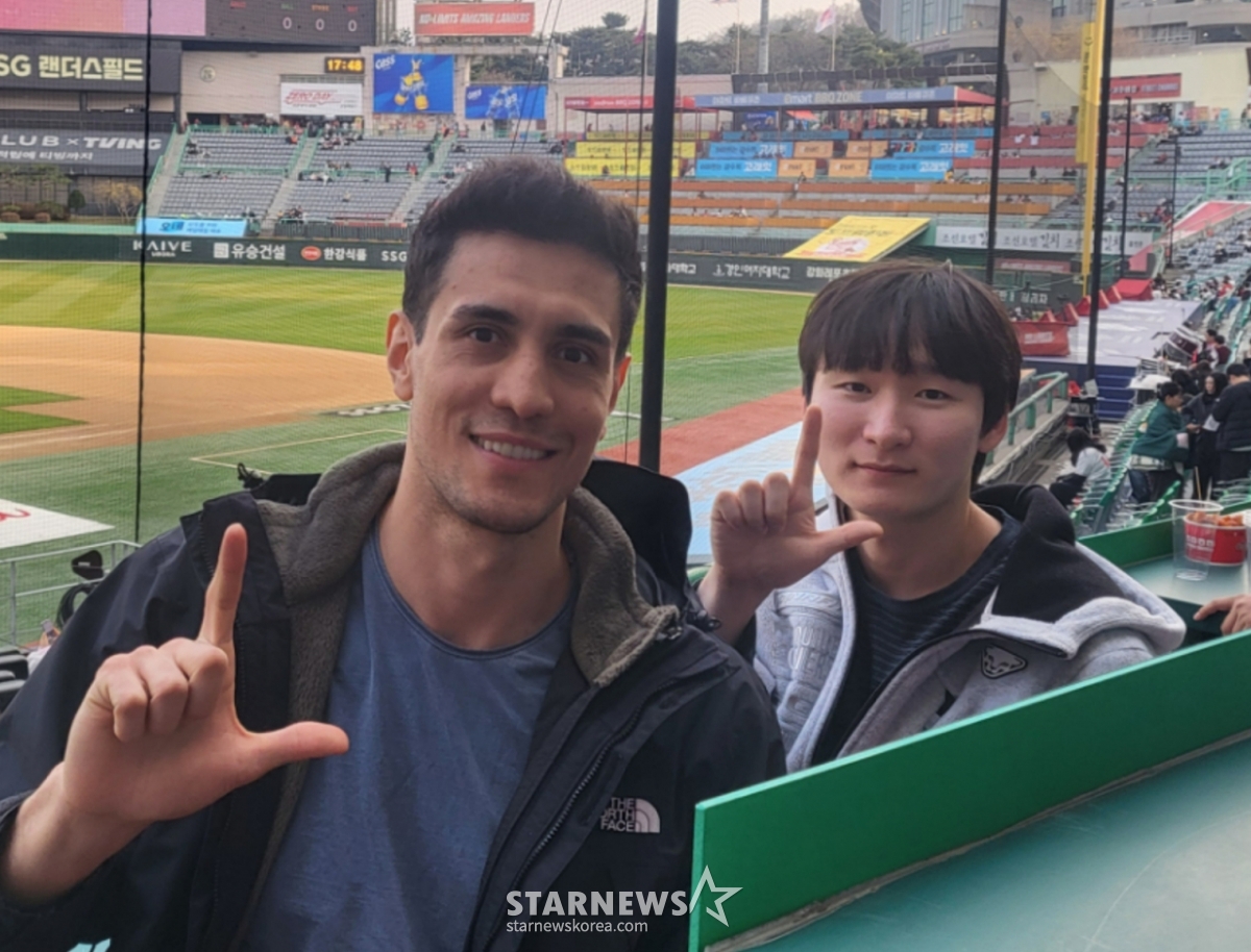 시즌을 아쉬웠던 결과로 마쳤기에 이젠 배구를 머릿속에서 지우기로 했다. '브라질산 폭격기' 서울 우리카드 주포 하파엘 아라우조(35)가 배구 코트가 아닌 야구장을 찾았다.