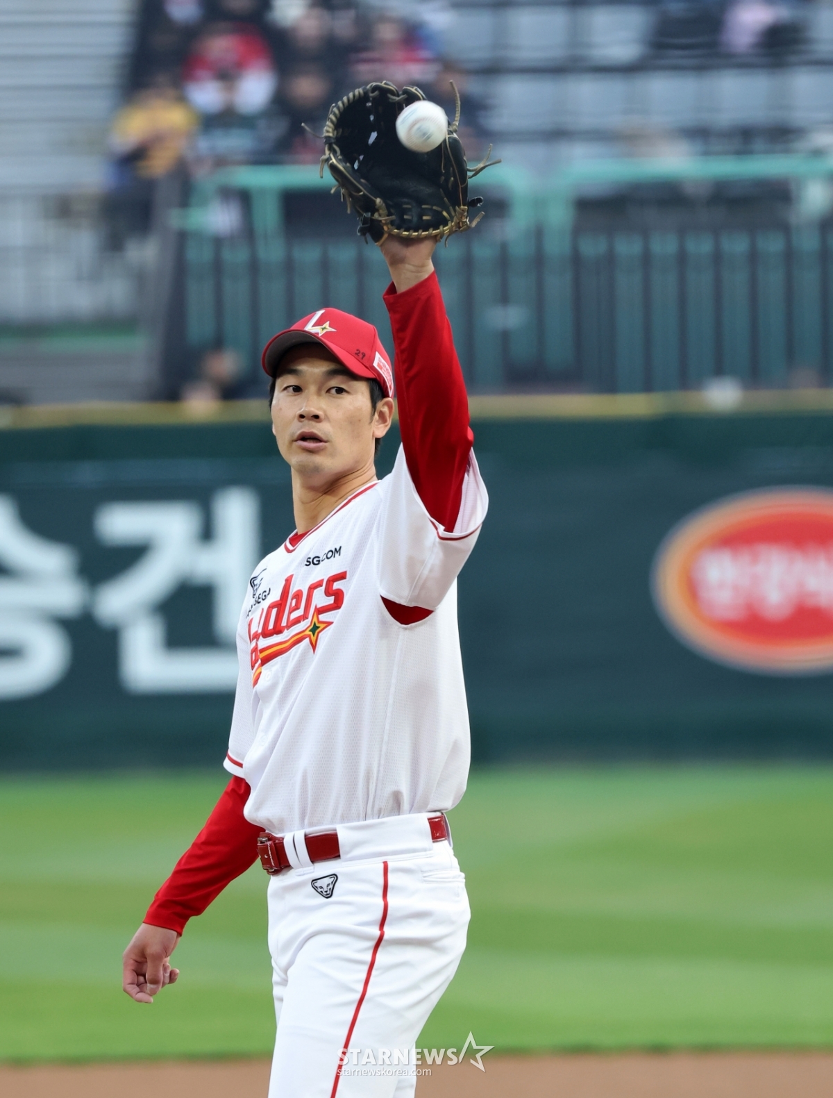 랜더스 우완투수 타케다가 1일 인천SSG랜더스필드에서 열린 2026 프로야구 SSG랜더스와 키움히어로즈의 경기에서 선발로 역투했다. 타케다는 1회초 3실점을 기록했다. 키움은 배동현이 선발투수로 나섰다.