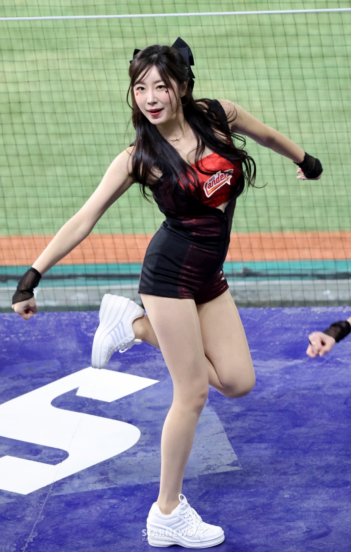 랜더스 치어리더 안지현이 1일 인천SSG랜더스필드에서 열리는 2026 프로야구 SSG랜더스와 키움히어로즈의 경기에서 공연을 펼쳤다. 안지현은 조다정, 강지은과 함께 공연을 선보였다. 이들은 2026년 4월 1일에 공연을 진행했다.