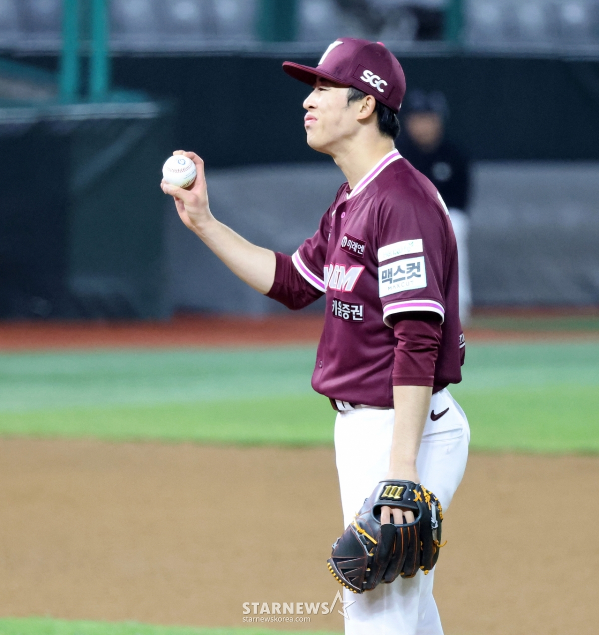 키움 선발투수 배동현이 1일 인천SSG랜더스필드에서 열리는 2026 프로야구 SSG랜더스와 키움히어로즈의 경기 5회말 에레디아의 타구에 정강이쪽을 맞았지만 괜찮다며 손짓하고 있다. 배동현은 5이닝 무실점을 이어가고 6회까지 7-0으로 키움이 앞서있다. . 2026.04.01.