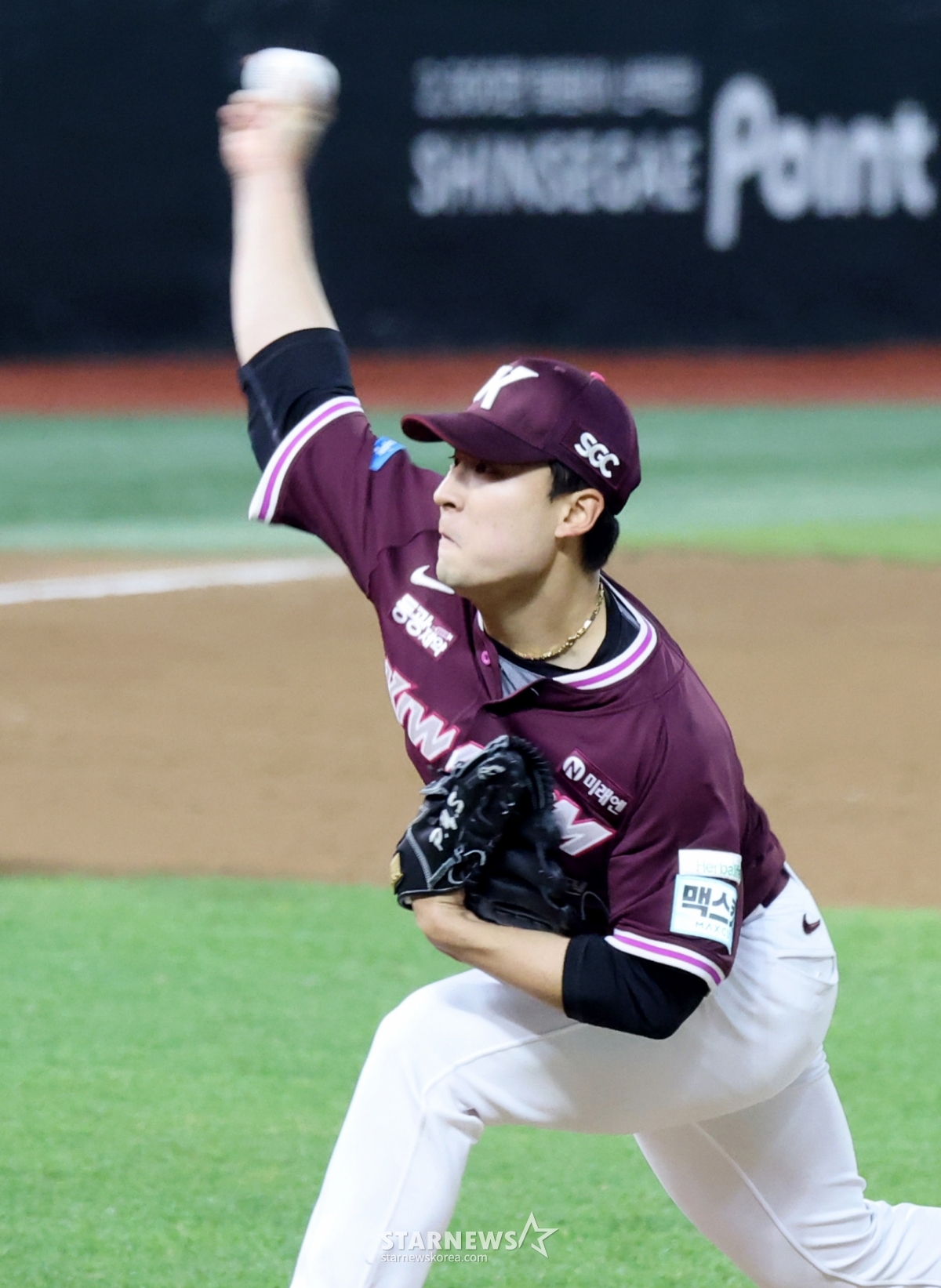키움 우완불펜 박윤성이 1일 인천SSG랜더스필드에서 열린 2026 프로야구 SSG랜더스와 키움히어로즈의 경기 6회말 무사 1,2루에 등판했다. 박윤성은 위기 상황에서 역투를 펼쳤다. 그는 1실점으로 위기를 막아냈다.