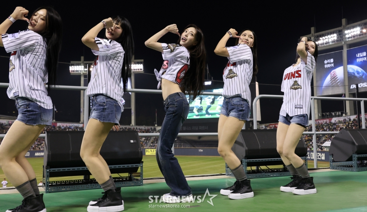 2026 신한 SOL Bank KBO리그 LG 트윈스와 KIA 타이거즈 경기가 1일 서울 잠실야구장에서 열렸다. LG 승리기원 시구자로 나선 있지(ITZY) 유나가 클리닝타임 때 응원단상에 올랐다. 유나는 응원단상에서 치어리딩을 했다.