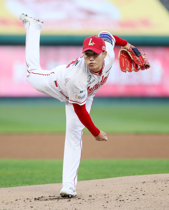 1회말 최정이 투런 홈런으로 선물을 안겨줬고 2회와 3회를 큰 위기 없이 마쳤다. 4회가 압권이었다. 키움에서 타격감이 뜨거운 중심 타선 안치홍, 최주환, 김건희 트리오를 KKK로 돌려세웠다. 좌우 타자를 가리지 않고 낙차 큰 커브를 결정구로 활용했고 제대로 적중했다.