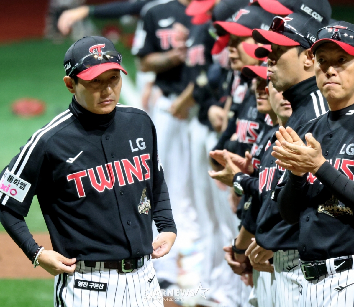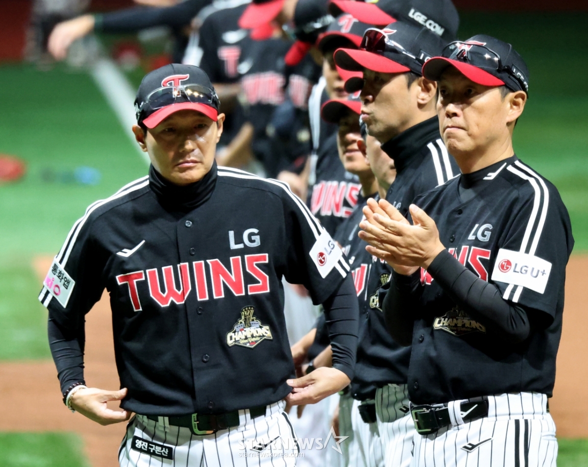 LG 염경엽 감독과 키움 설종진 감독이 4일 여척스카이돔에서 열린 2026KBO리그 키움히어로즈와 LG트윈스 경기를 앞두고 고척개막식에 참석해 악수를 나누고 있 다. 2026.04.03.