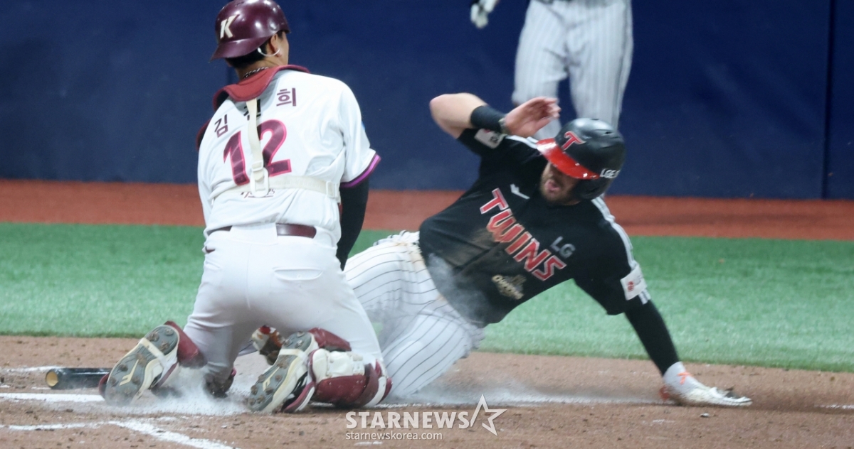 LG 4번타자 오스틴이 4일 여척스카이돔에서 열린 2026KBO리그 키움히어로즈와 LG트윈스 경기 6회초 1사 3루 박동원 3루수앞 땅볼때 홈에서 태그아웃됐다. 이 장면은 2026년 4월 3일에 발생했다. 사진은 오스틴이 태그아웃되는 순간을 포착했다.