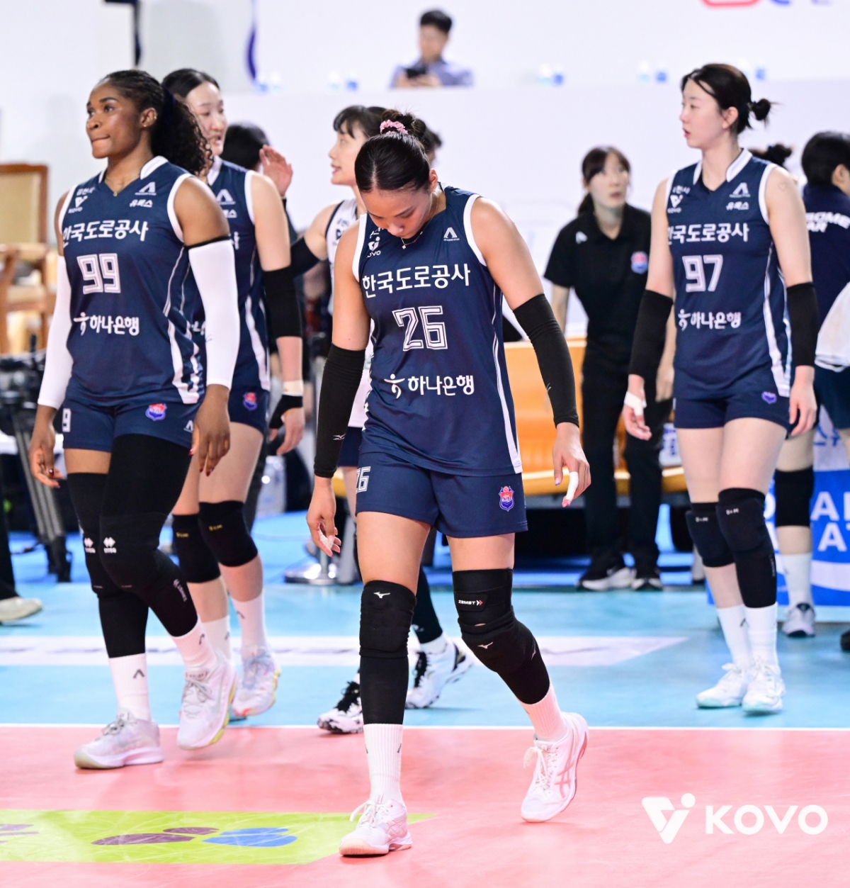 도로공사는 3일 경북 김천실내체육관에서 열린 진에어 2025-2026 프로배구 V-리그 여자부 챔프전 2차전에서 GS칼텍스에 2-3(15-25, 25-14, 25-20, 22-25, 7-15)으로 역전패했다.