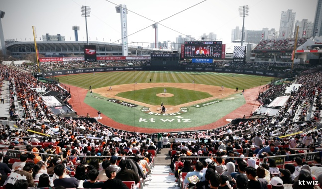 이들의 뒤에는 든든한 홈팬들이 함께했다. 이날 수원케이티위즈파크에는 경기 시작도 전에 1만 8700명의 만원 관중이 운집했다. 개막 5연승으로 기대를 모았던 KT는 홈에서 2연패를 당해 팬들에게 실망을 안겼다. 하지만 KT 팬들은 3일 연속 1루와 홈구장을 꽉 채우며 열띤 응원을 보냈다.