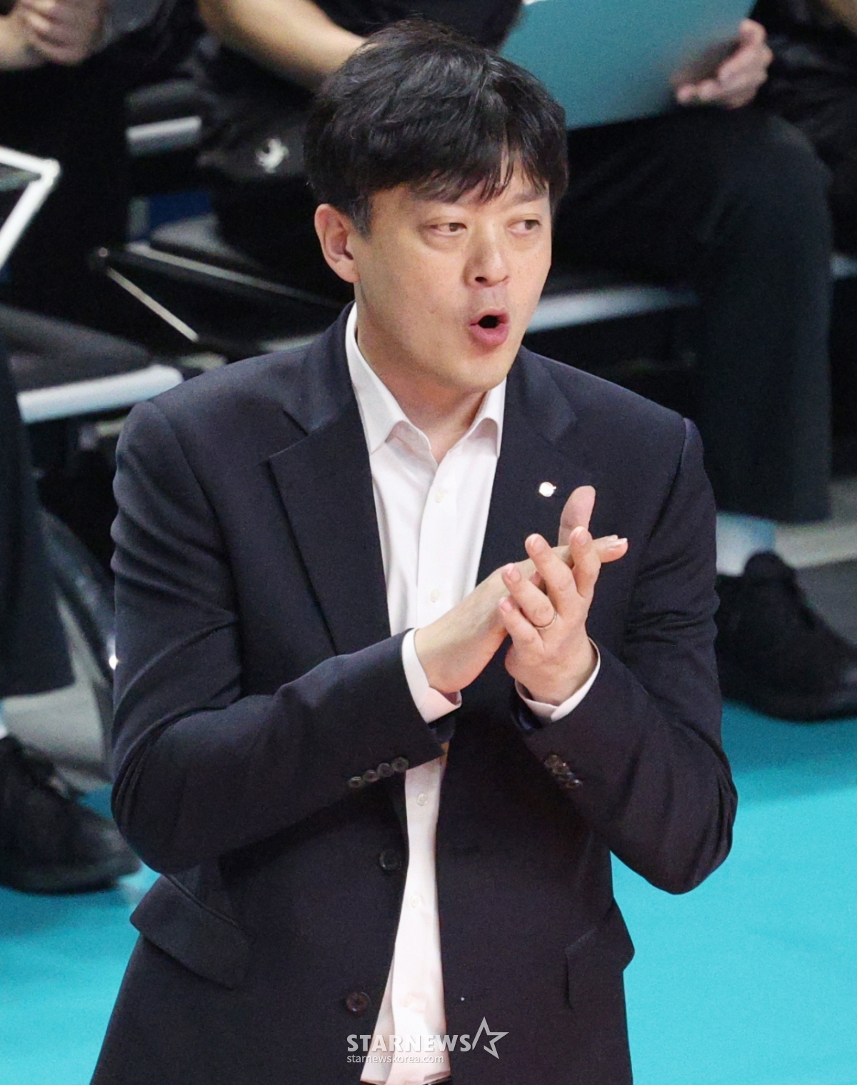 2025-2026 V-리그 포스트시즌 여자 프로배구 챔피언 결정전 3차전 GS칼텍스 대 한국도로공사 경기가 5일 서울 장충체육관에서 열렸다. 이영택 감독이 박수로 선수들을 독려했다. 이 경기는 GS칼텍스와 한국도로공사 간의 경기였다.