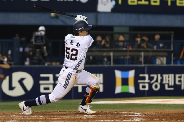 한화는 한 발 먼저 불펜을 가동했다. 황준서 대신 윤산흠을 등판시켰는데 두산은 득점 기회를 놓치지 않았다. 박준순이 1사 1,3루 볼카운트 1-1에서 높은 코스의 시속 145㎞ 직구를 강타, 좌측 담장을 넘기는 비거리 115m 스리런 홈런포가 됐다.