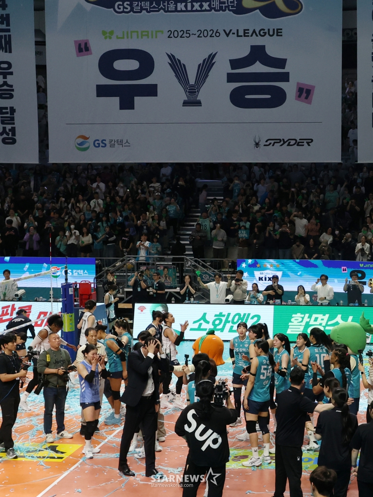 2025-2026 V-리그 포스트시즌 여자 프로배구 챔피언 결정전 3차전 GS칼텍스 대 한국도로공사 경기가 서울 장충체육관에서 열렸다. GS칼텍스가 우승을 차지했다. 이영택 감독과 선수단은 우승 후 기쁨을 나눴다.