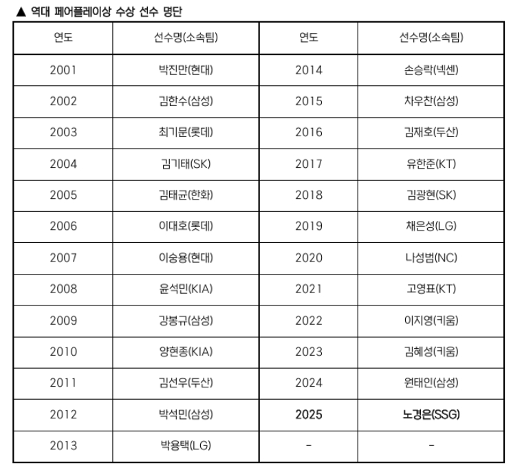 상대를 존중하고 배려하는 페어 플레이는 스포츠의 기본 정신이자 팬들에게 승리보다도 더 큰 감동을 선사한다. 한국야구위원회(KBO)가 2001년부터 매년 페어플레이상을 선정해 골든글러브 시상식에서 함께 수여하는 것도 그런 이유다. 치열한 승부를 잠시 잊고 미소를 머금게 하는 '리스펙트 문화'가 KBO리그의 가치를 더욱 빛내고 있다.