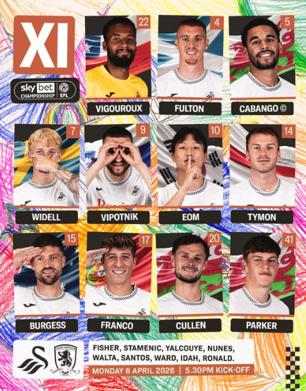스완지는 7일(한국시간) 영국 웨일스의 스완지닷컴 스타디움에서 열린 미들즈브러와의 '2025~2026 잉글랜드 챔피언십(2부리그)' 41라운드 홈 경기에서 2-2로 비겼다.