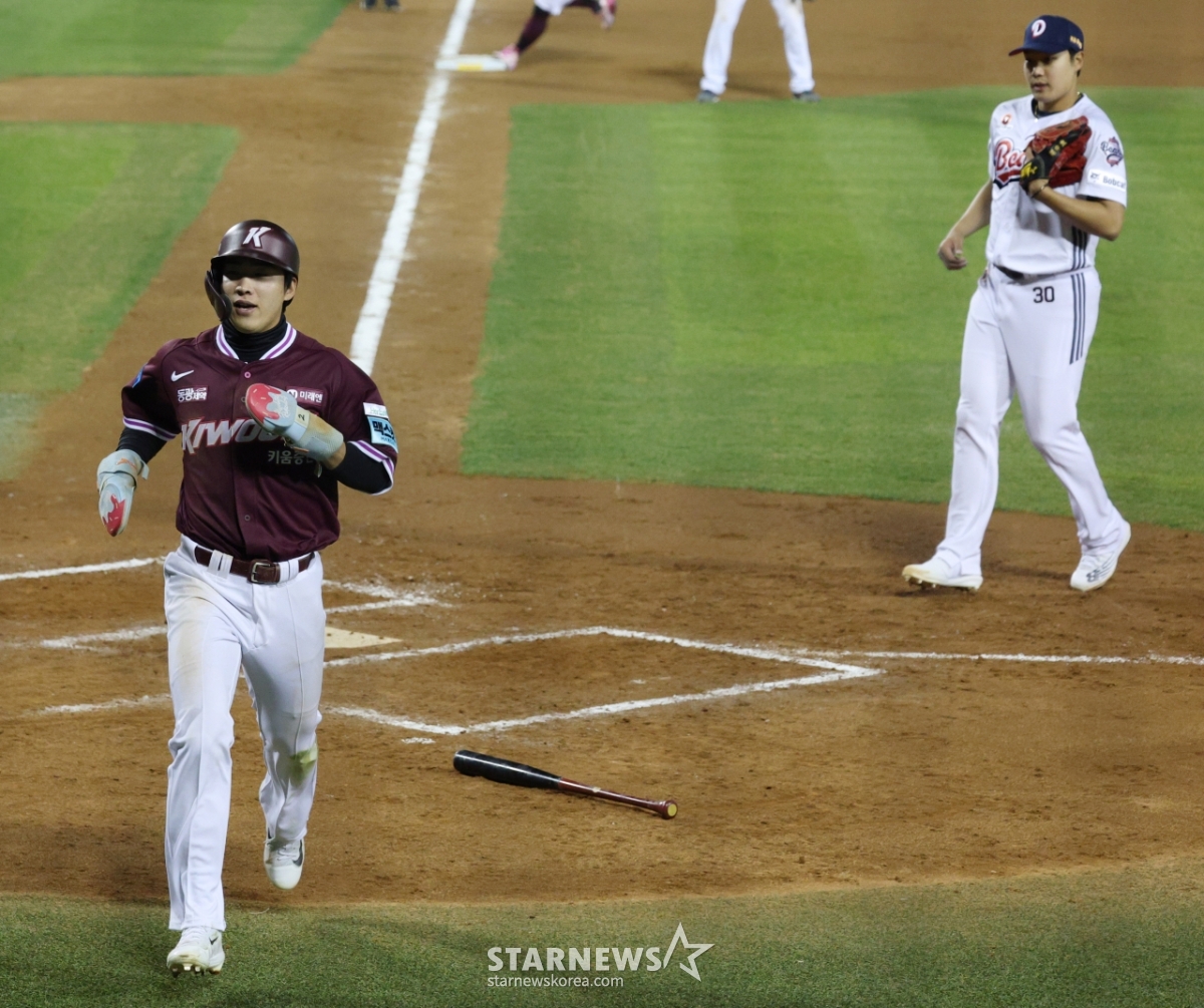 2026 신한 SOL KBO리그 두산 베어스와 키움 히어로즈의 경기가 7일 서울 잠실야구장에서 열렸다. 키움은 6회초 1사 2,3루 상황에서 3루주자 이주형이 이형종의 스트라이크 낫아웃 때 홈으로 뛰었다. 이주형은 이 득점으로 역전에 성공했다.