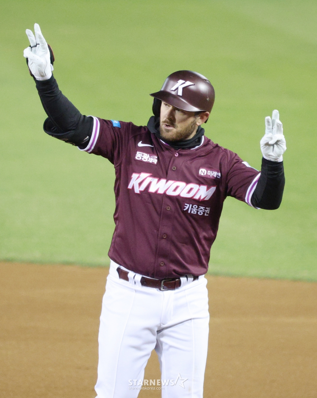 스포츠야구[포토] 브룩스 '2점만 더 내자'발행 : 2026.04.07 ・ 21:00조회수 :잠실=김진경 대기자2026 신한 SOL KBO리그 두산 베어스 대 키움 히어로즈 경기가 7일 서울 잠실야구장에서 열렸다.키움 브룩스가 7회초 무사 1루에서 중전 안타를 날리고 출루한 후 세리머니를 하고 있다.<저작권자 © 스타뉴스, 무단전재 및 재배포 금지>브리핑추천 기사김진경 대기자기자홈좋아요스포츠-야구의 인기 급상승 뉴스스포츠-야구의 최신 뉴스AD
