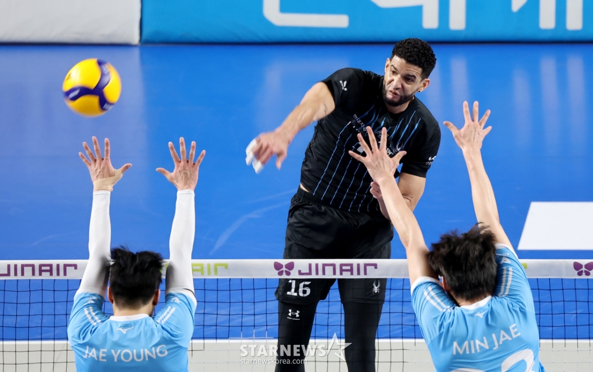 현대 레오가 8일 천안유관순체육관에서 열린 진에어 2025-2026 V리그 챔피언결정전 대한항공과 현대캐피탈 4차전에서 후위공격을 시도했다. 레오는 경기 중 후위공격을 성공시키며 팀에 기여했다. 이 경기는 V리그 챔피언결정전의 중요한 순간이었다.
