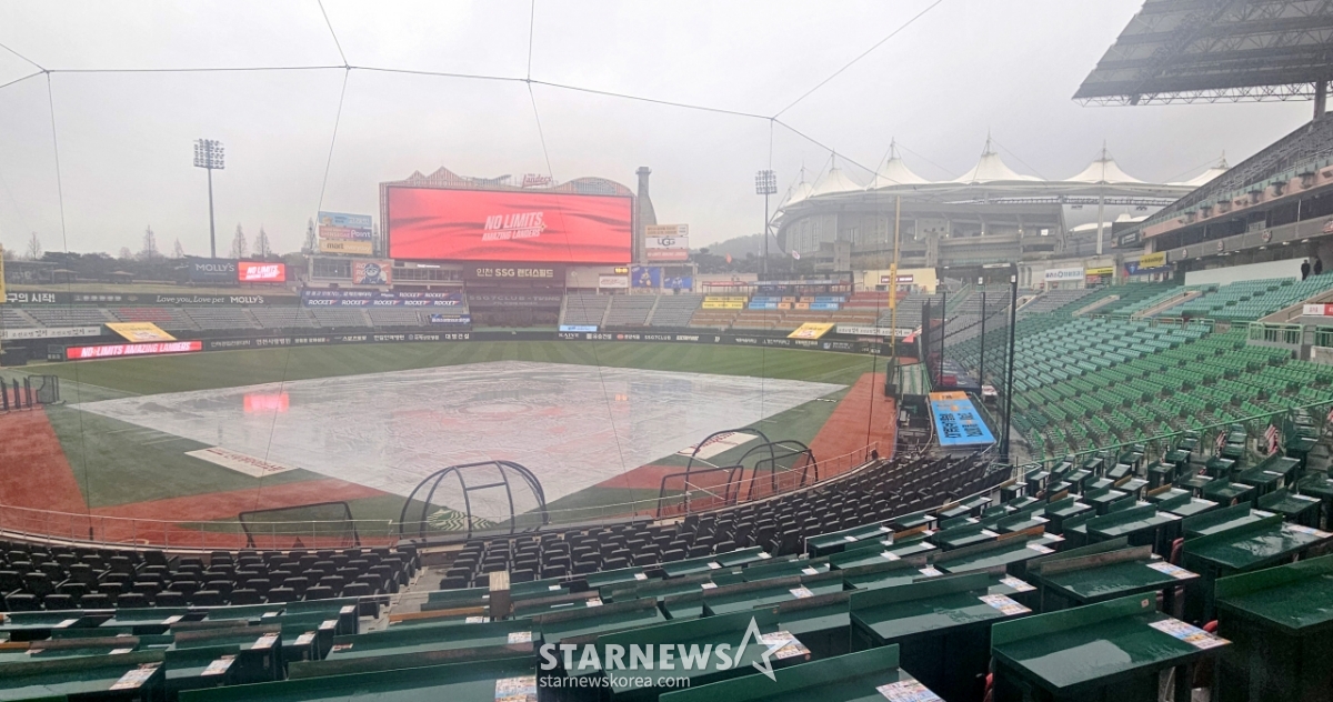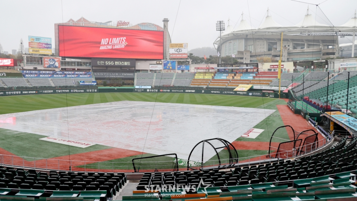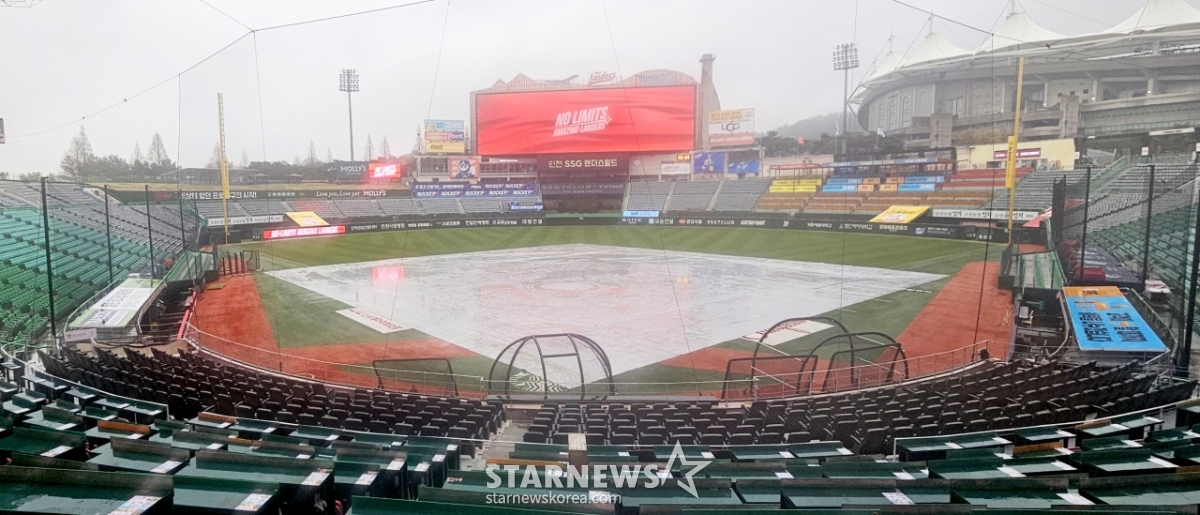 봄비가 촉촉히 랜더스필드를 적시는 가운데 9일 열릴 예정이었던 한화이글스와 SSG랜더스 경기은 우천으로 취소됐다. 전국에 내리는 봄비로 잠실, 광주,창원, 사진 경기도 모두 우천취소됐다. 2026.04.09.