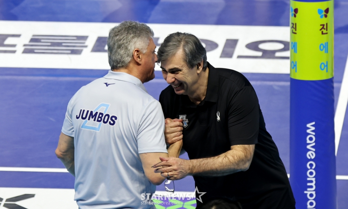 현대 블랑 감독이 10일 인천 계양체육관에서 열린 진에어 2025-2026 V리그 챔피언결정전 대한항공과 현대캐피탈 5차전을 앞두고 있었다. 블랑 감독은 헤난 감독을 찾아 악수를 나누었다. 이들은 5차전에 대한 기대를 표했다.