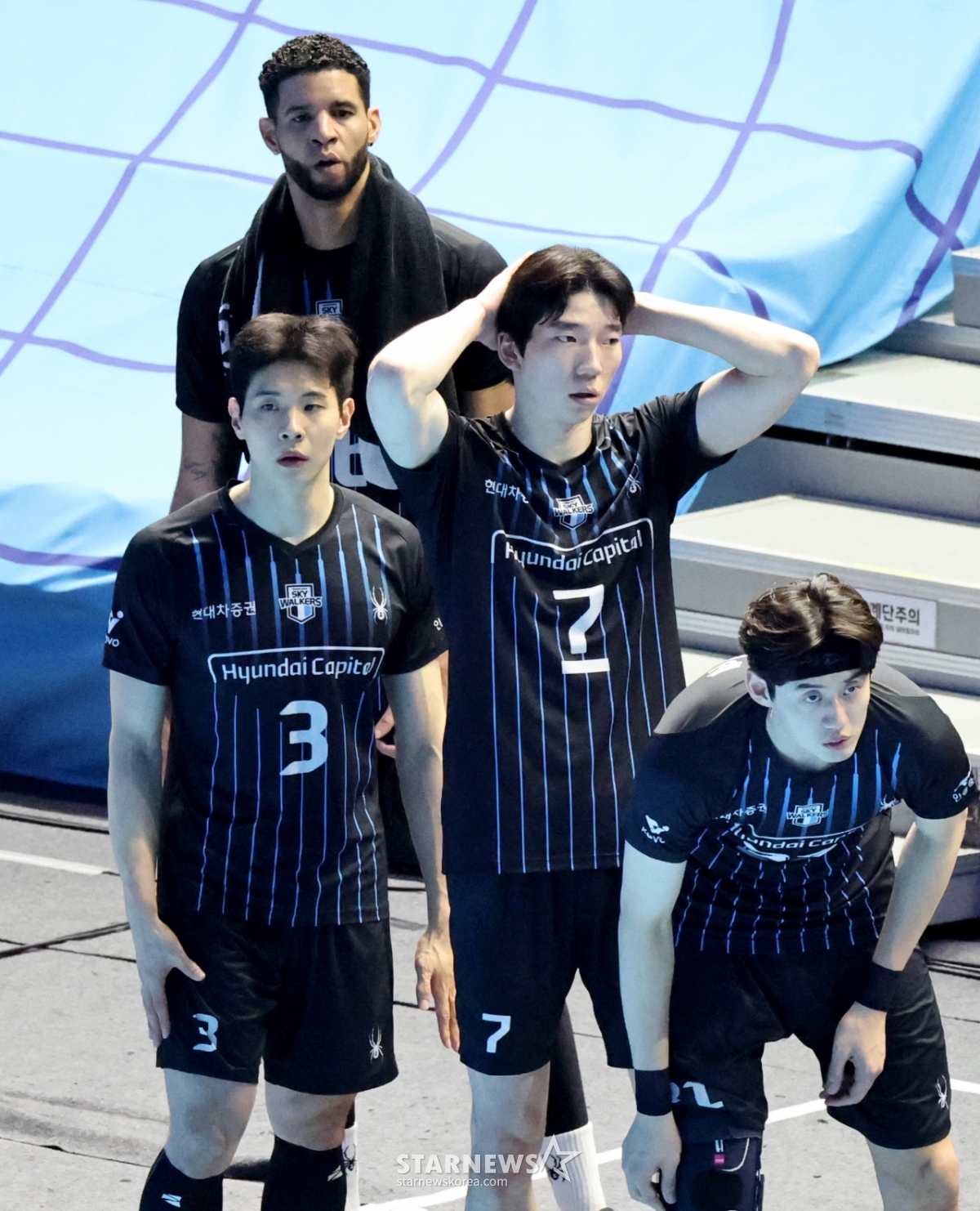 현대 허수봉과 레오가 10일 인천 계양체육관에서 열린 진에어 2025-2026 V리그 챔피언결정전 대한항공과 현대캐피탈 5차전 1세트에서 벤치를 지켰다. 1세트 점수차가 벌어지자 벤치에 앉아 있었다. 이 경기는 2026년 4월 10일에 진행되었다.