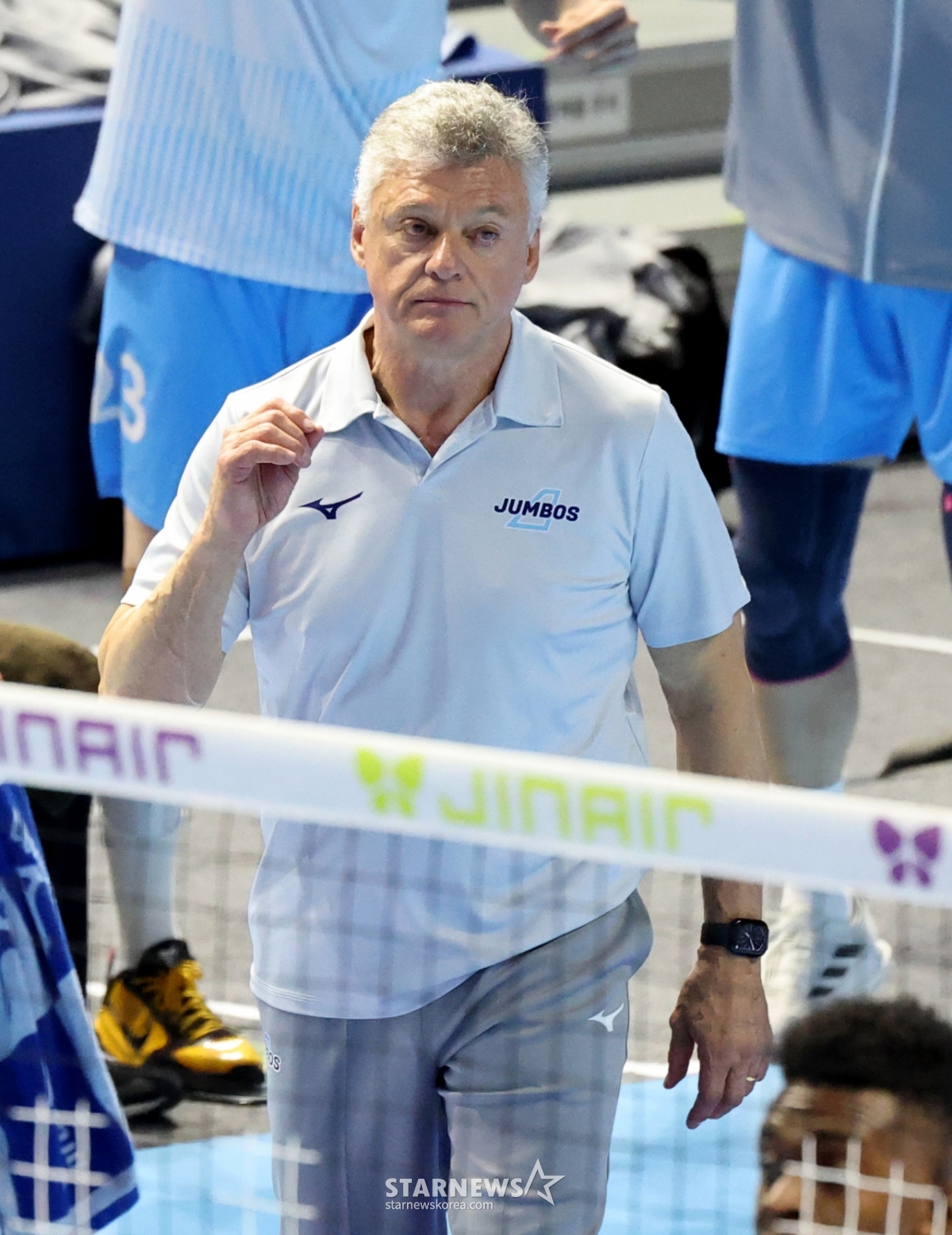 대한항공 헤난 감독이 10일 인천 계양체육관에서 열린 진에어 2025-2026 V리그 챔피언결정전 대한항공과 현대캐피탈 5차전에서 환호했다. 헤난 감독은 선수들을 믿는다는 메시지를 전했다. 이 경기는 2026년 4월 10일에 진행되었다.